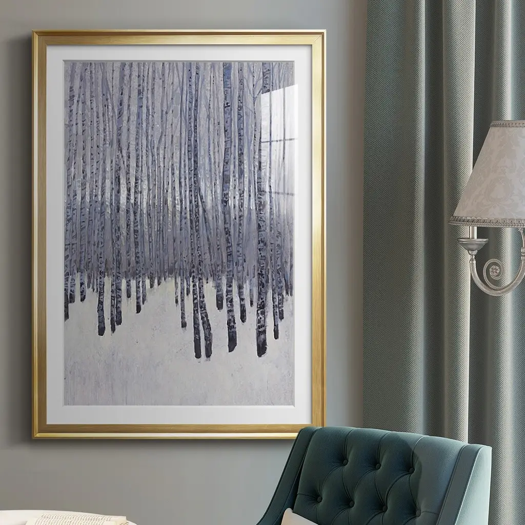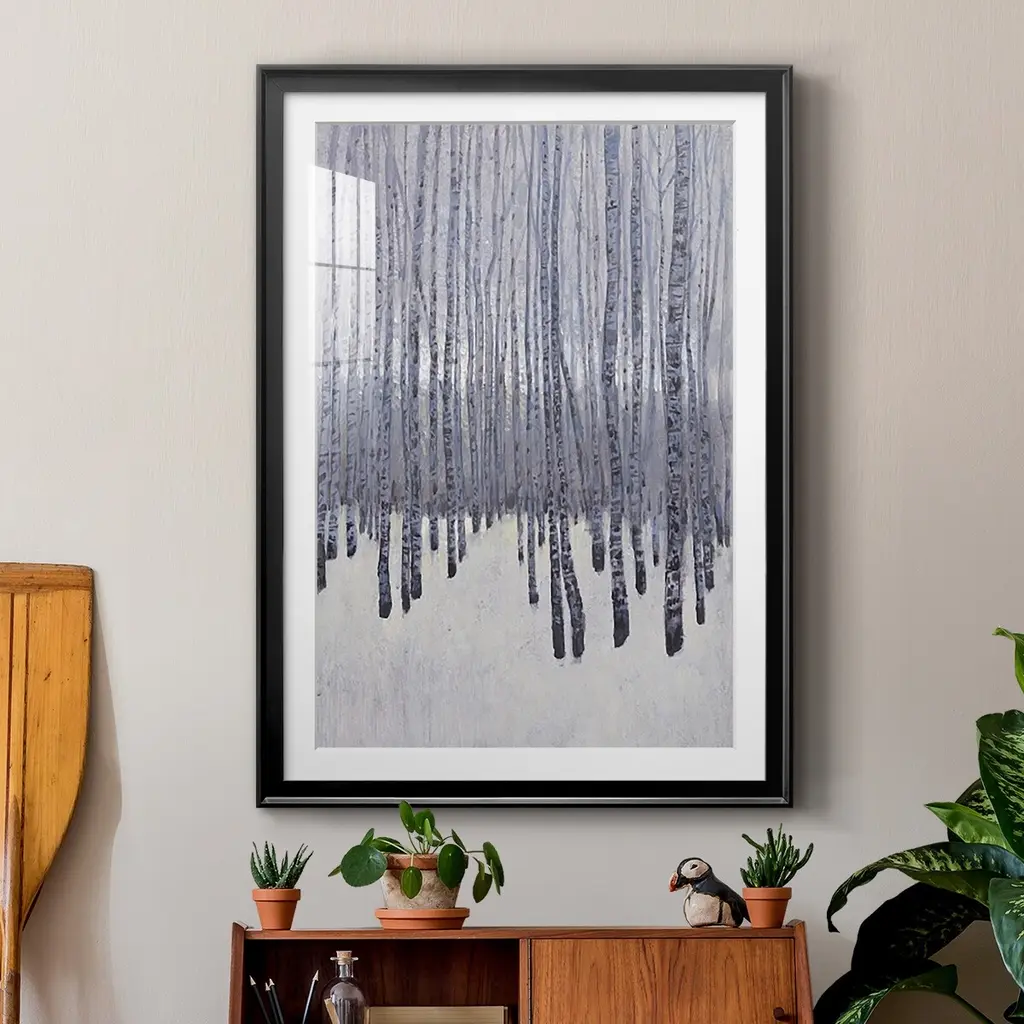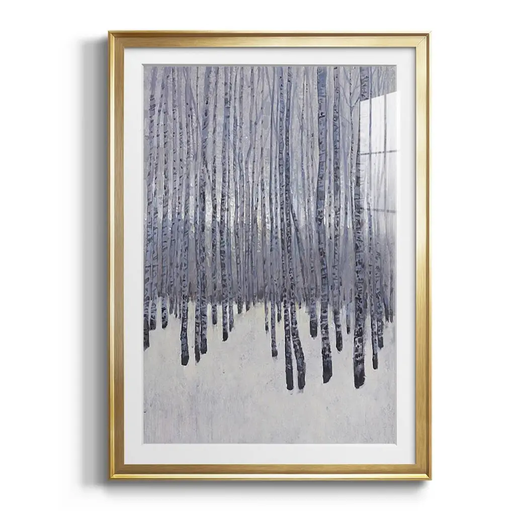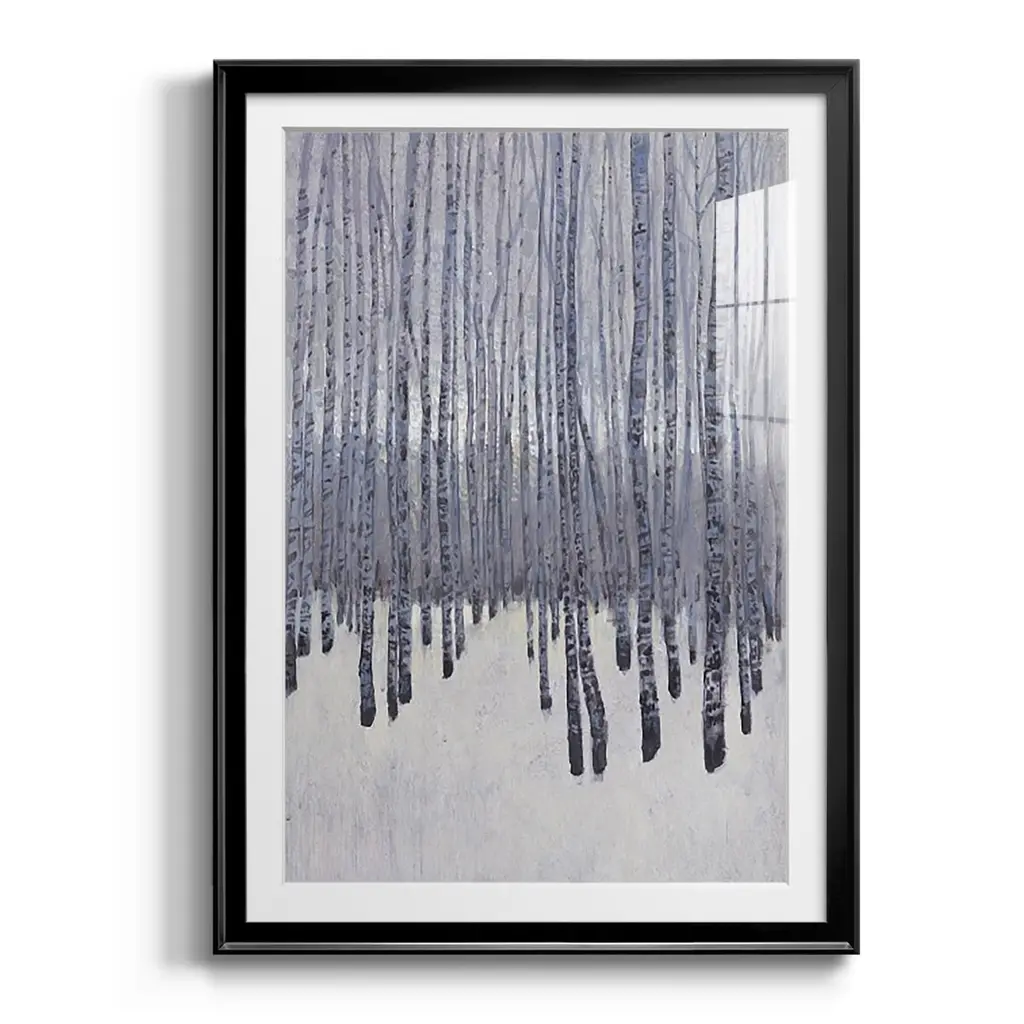 Bare Trees in Winter I Premium Framed Print - Ready to Hang A Premium Framed Print created to last. Framed in distressed wood and available in an array of sizes and colors Featuring a beveled a solid wood stretcher bar, each piece comes ready to hand 4 SIZES AVAILABLE 30.5''X42.5'' - Overall Size 26.5'X36.5'' - Overall Size 22.5''x30.5'' - Overall Size 18.5''x24.5'' - Overall Size Each piece is made to order. Each piece comes with hanging hardware. Made in the USA Ready to Hang Giclee Paper Print Acrylic Glass Beveled Matt Board