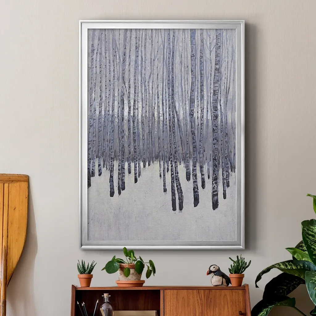 Bare Trees in Winter I Premium Framed Print - Ready to Hang A Premium Framed Print created to last. Framed in distressed wood and available in an array of sizes and colors Featuring a beveled a solid wood stretcher bar, each piece comes ready to hand 4 SIZES AVAILABLE 30.5''X42.5'' - Overall Size 26.5'X36.5'' - Overall Size 22.5''x30.5'' - Overall Size 18.5''x24.5'' - Overall Size Each piece is made to order. Each piece comes with hanging hardware. Made in the USA Ready to Hang
