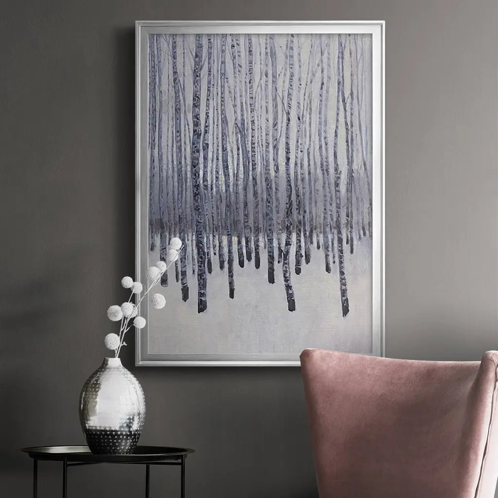 Bare Trees in Winter II Premium Framed Print - Ready to Hang A Premium Framed Print created to last. Framed in distressed wood and available in an array of sizes and colors Featuring a beveled a solid wood stretcher bar, each piece comes ready to hand 4 SIZES AVAILABLE 30.5''X42.5'' - Overall Size 26.5'X36.5'' - Overall Size 22.5''x30.5'' - Overall Size 18.5''x24.5'' - Overall Size Each piece is made to order. Each piece comes with hanging hardware. Made in the USA Ready to Hang