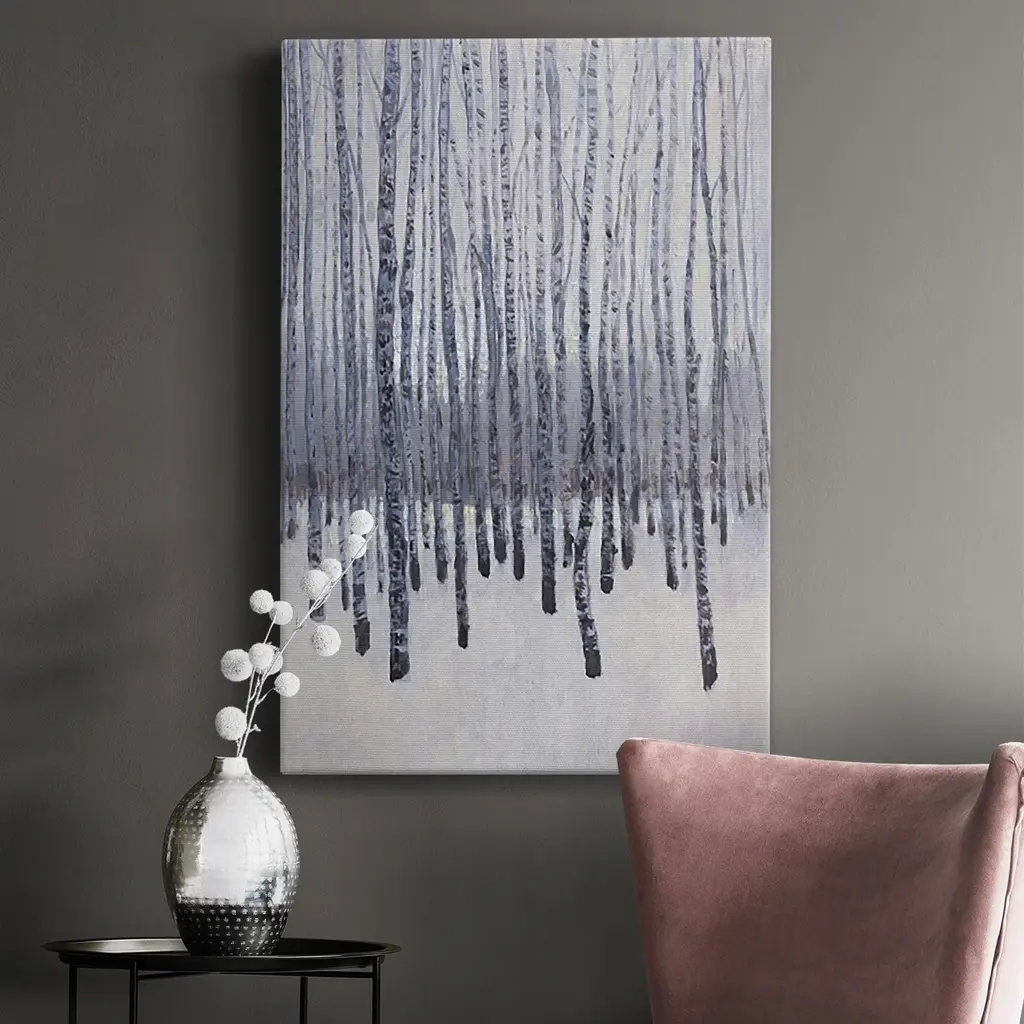 Bare Trees in Winter II Premium Gallery Wrapped Canvas - Ready to Hang A premium hand stretched gallery wrapped canvas print created to last. Featuring a beveled a solid wood stretcher bar, each piece comes ready to hand 6 SIZES AVAILABLE 8''X12'' - Overall Size 12''X18'' - Overall Size 18''X27'' - Overall Size 24''x36'' - Overall Size 32''x48'' - Overall Size 40''x60'' - Overall Size Each piece is made to order. Built to Last Each piece comes ready to hang Solid wood stretcher Fade and Water resistant Made domestically