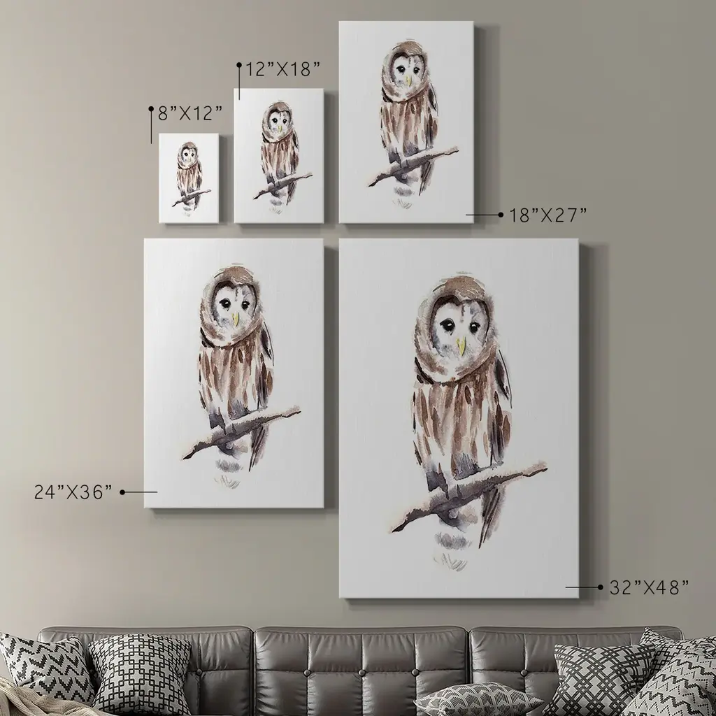 Barred Owl Impressions I Premium Gallery Wrapped Canvas - Ready to Hang A premium hand stretched gallery wrapped canvas print created to last. Featuring a beveled a solid wood stretcher bar, each piece comes ready to hand 6 SIZES AVAILABLE 8''X12'' - Overall Size 12''X18'' - Overall Size 18''X27'' - Overall Size 24''x36'' - Overall Size 32''x48'' - Overall Size 40''x60'' - Overall Size Each piece is made to order. Built to Last Each piece comes ready to hang Solid wood stretcher Fade and Water resistant Made domestically