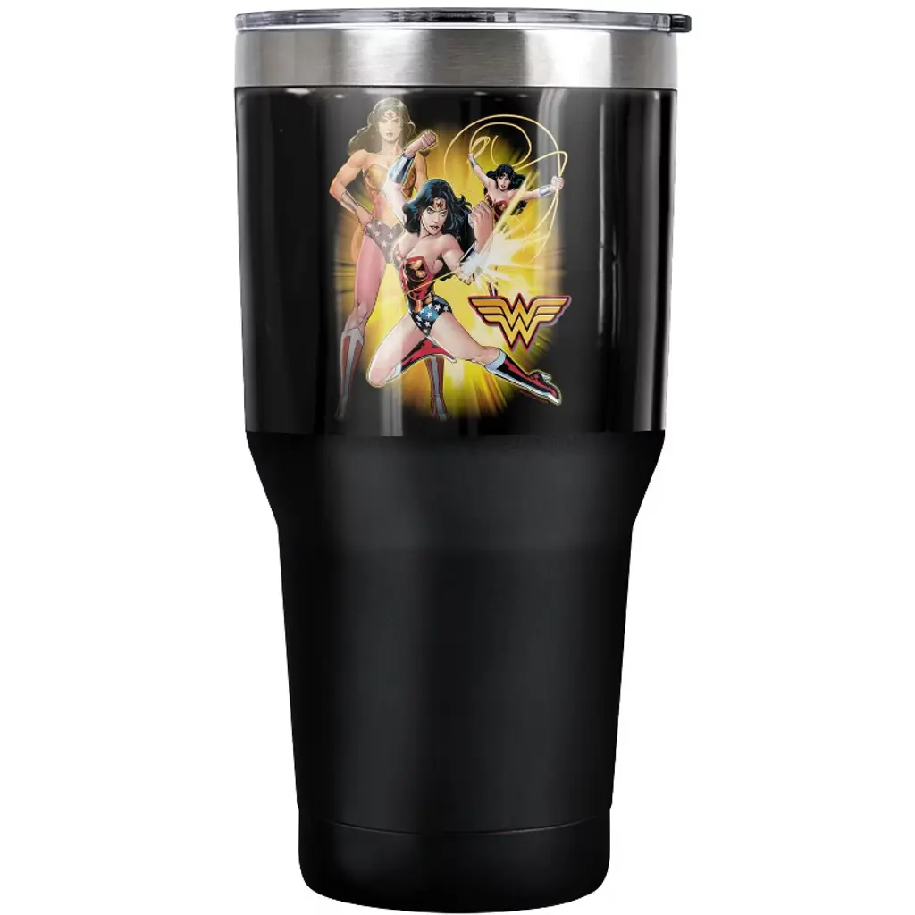 Start strong and stay refreshed with this officially licensed 30 oz stainless steel travel tumbler from Logovision—built for fans with places to go and coffee to drink. Crafted from premium 18/8 food-grade stainless steel and finished with durable powder coating, this high-capacity tumbler features vacuum-insulated, double-wall construction to keep beverages hot for up to 6 hours and cold for up to 12. Its sweatproof design keeps hands dry, and the cool-touch exterior makes it comfortable to carry, no matter what you're sipping. Perfect for long commutes, weekend getaways, or tailgates with friends, this tumbler fits in most standard cup holders and includes a BPA-free dual-flip sliding lid with a secure silicone gasket to prevent leaks. At nearly 8 inches tall, it's sized for serious hydration (or caffeine). Easy to disassemble and hand wash—this design is not dishwasher safe. Each tumbler is printed-on-demand in the USA and showcases officially licensed, hand-drawn artwork from Logovision’s in-house artists. Whether you're powering through your workday or repping your favorite fandom on the go, this 30 oz tumbler delivers style, performance, and personality in one.