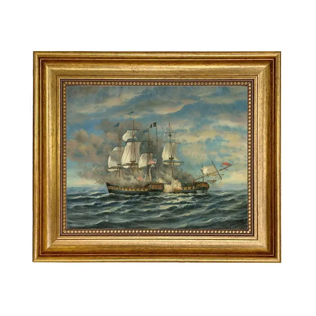 "Battle Between Uss Constitution And Hms Guerriere" Contemporary Nautical Canvas Reproduction Print, Framed 11.5 X 13.5