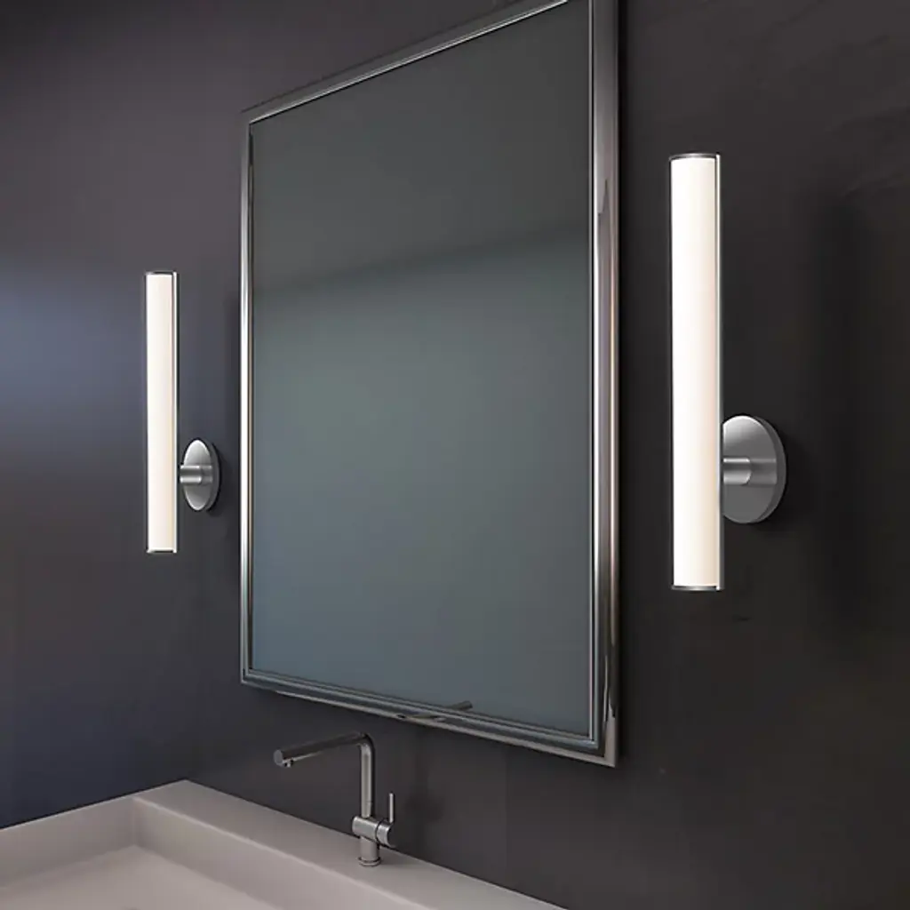 The Bauhaus Columns LED Vanity Light by SONNEMAN stays true to classic Bauhaus design elements of simplicity and geometric purity. The columns showcase a long, tubular White Etched Glass Shade that filters the integrated LED lighting. Opting for style that does away with unnecessary ornamentation, the bath bar brings solid presence and sophistication to a vanity mirror in a modern bath or powder room.