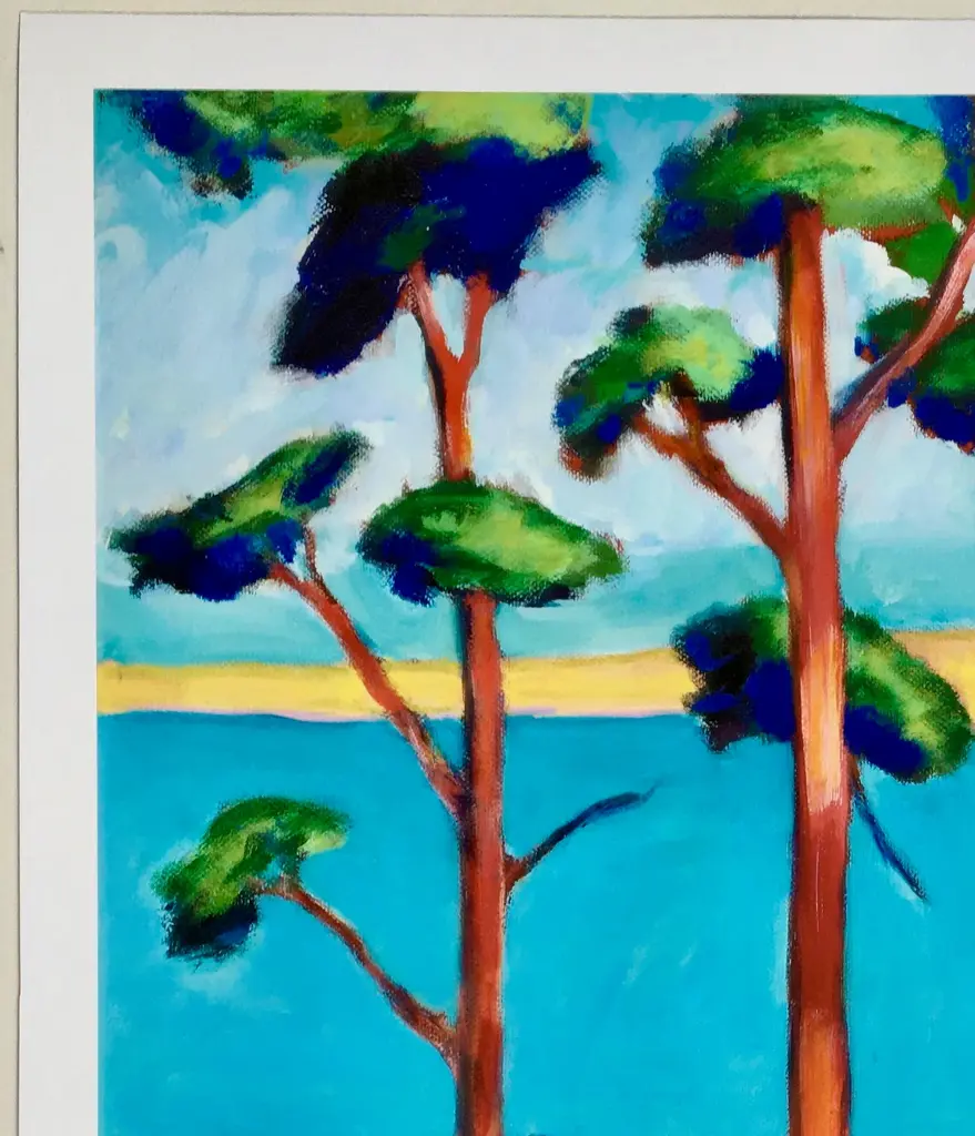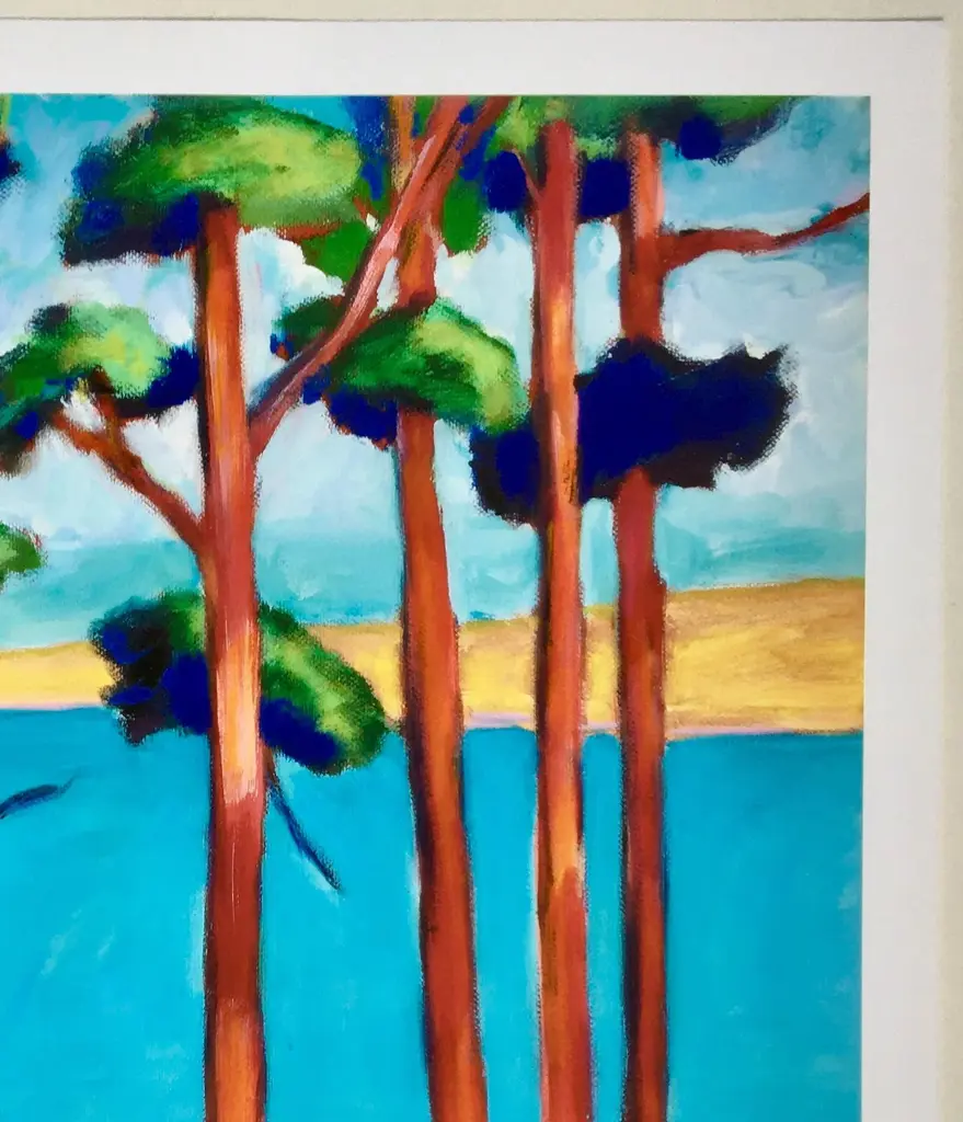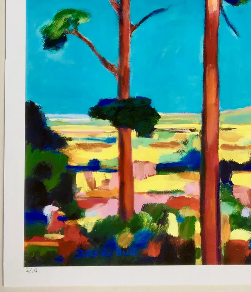 This is a beautiful giclee print of a landscape oil painting by internationally exhibited and collected Portuguese-American artist Joao de Brito. Signed in pencil this is #2 of a limited edition of 10 prints. His en plain air and portrait works are influenced by French fauvists and California impressionists. He is known for his use of vibrant colors with multiple layers of oil on canvas that elicit light, life, and lively energy.