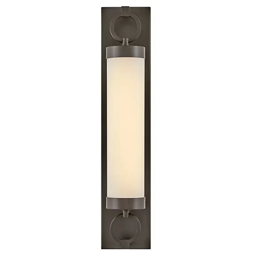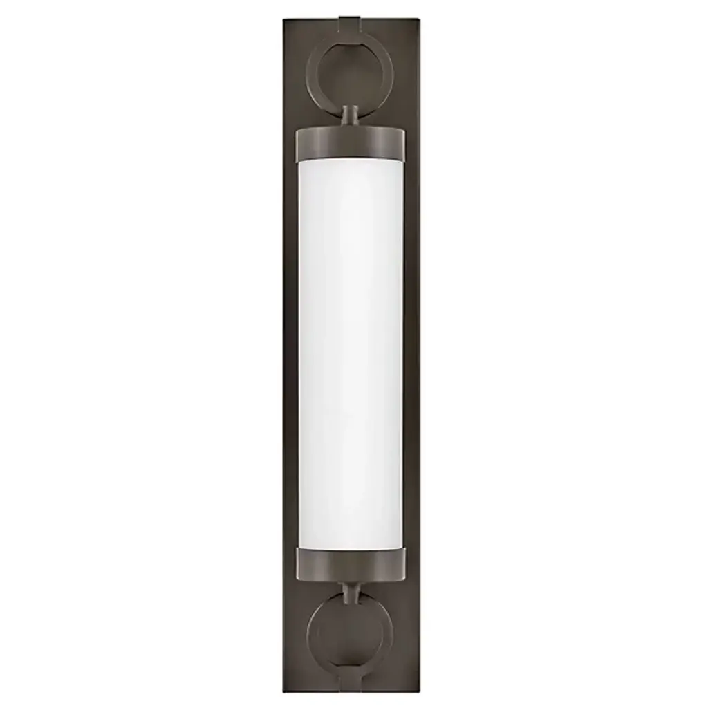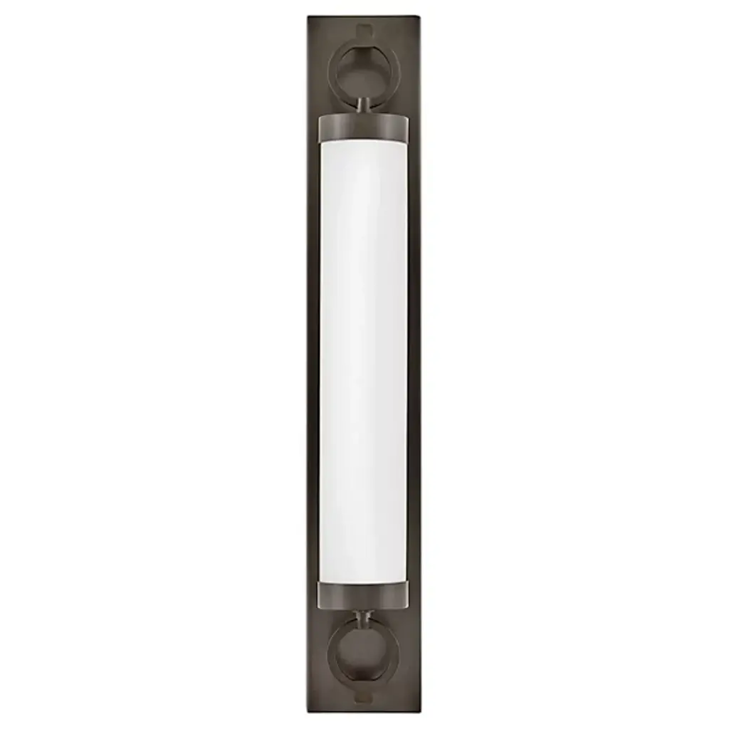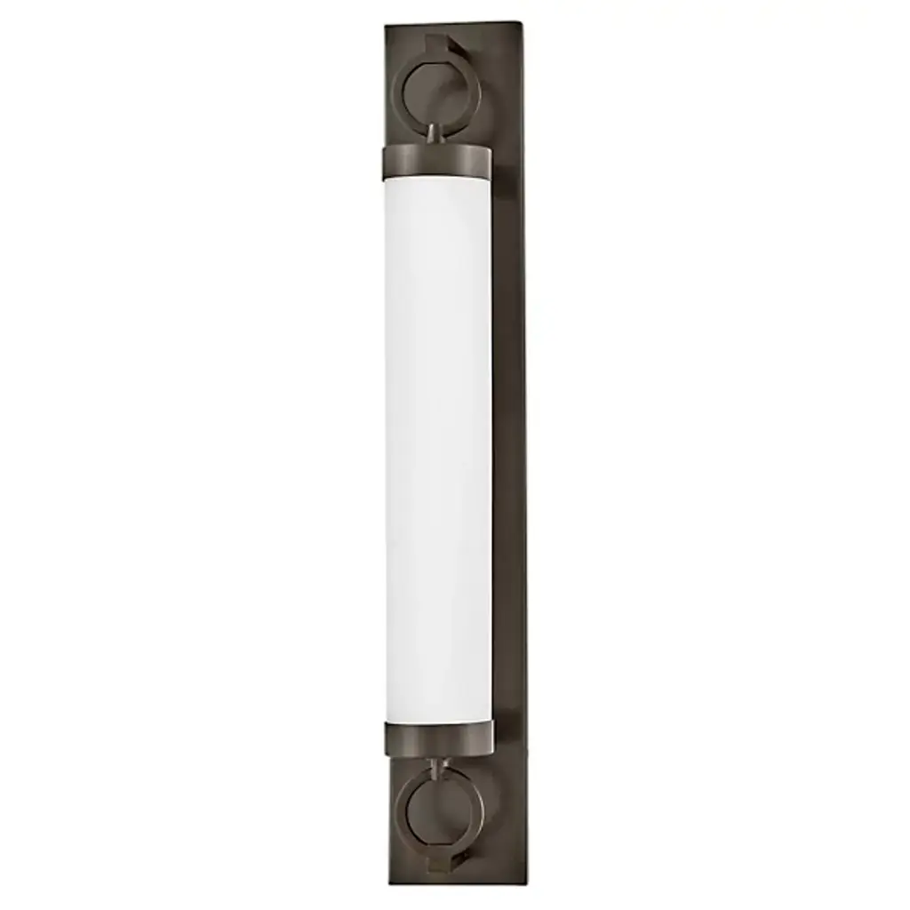 The Baylor LED Vanity Light from Hinkley exudes transitional style and functionality. Crafted from durable steel, this vanity light revamps your living space. The cylindrically shaped glass shade complements the linear design, creating a timeless aesthetic. Illuminate your bathroom with Baylor’s integrated LED, providing optimal lighting for your grooming routine. Easily adjust the brightness with a separately sold ELV dimmer. Lovely rings hold the vanity light on your wall, completing the look.