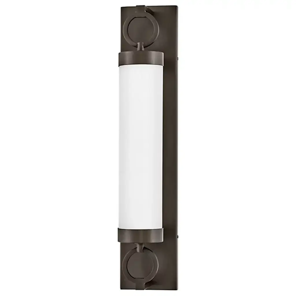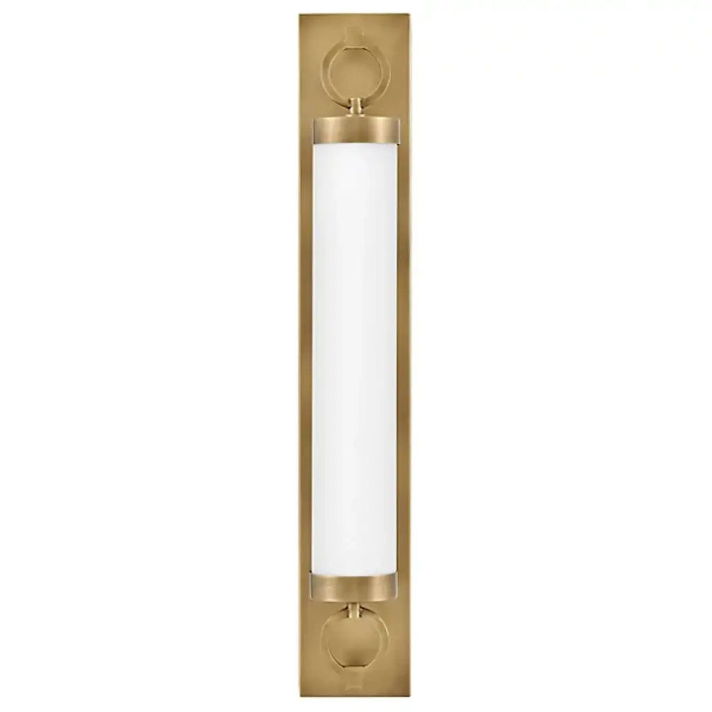The Baylor LED Vanity Light from Hinkley exudes transitional style and functionality. Crafted from durable steel, this vanity light revamps your living space. The cylindrically shaped glass shade complements the linear design, creating a timeless aesthetic. Illuminate your bathroom with Baylor’s integrated LED, providing optimal lighting for your grooming routine. Easily adjust the brightness with a separately sold ELV dimmer. Lovely rings hold the vanity light on your wall, completing the look.