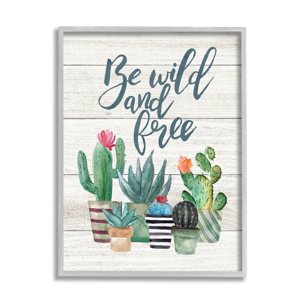 Be Awesome Cactus Succulents Watercolor Stretched Canvas Wall Art, 16"x20"