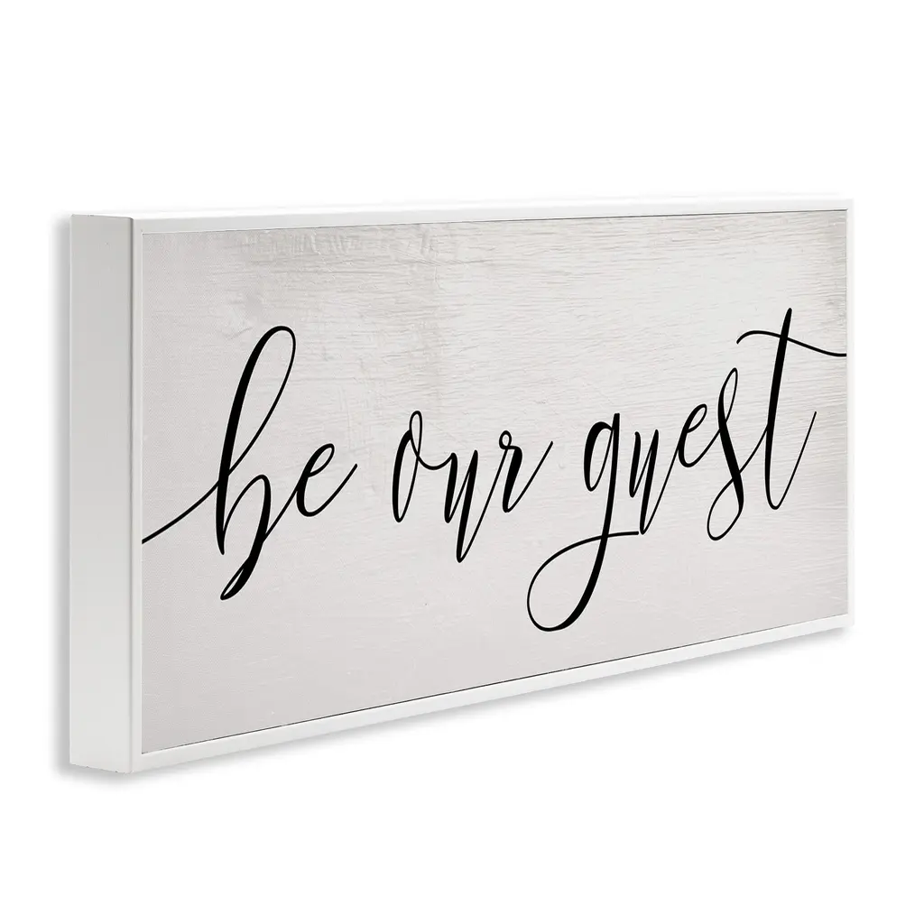Be Our Guest Script White Wood Look Typography Framed Wall Art - 13 X 30 - Wood - White