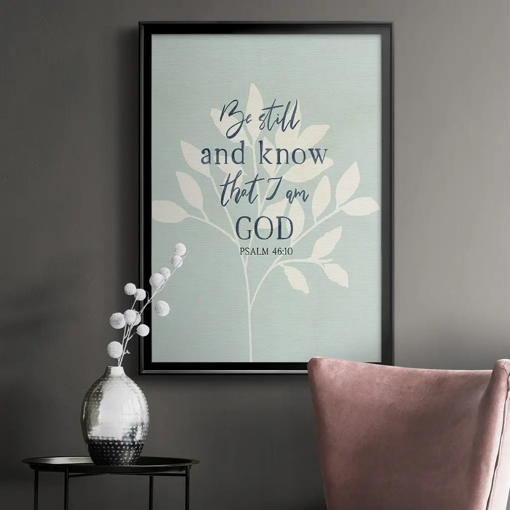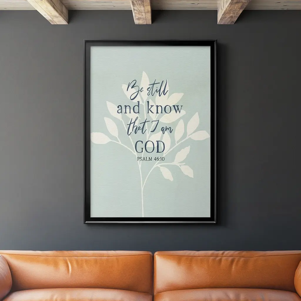 Be Still Premium Framed Print - Ready to Hang A Premium Framed Print created to last. Framed in distressed wood and available in an array of sizes and colors Featuring a beveled a solid wood stretcher bar, each piece comes ready to hand 4 SIZES AVAILABLE 30.5''X42.5'' - Overall Size 26.5'X36.5'' - Overall Size 22.5''x30.5'' - Overall Size 18.5''x24.5'' - Overall Size Each piece is made to order. Each piece comes with hanging hardware. Made in the USA Ready to Hang