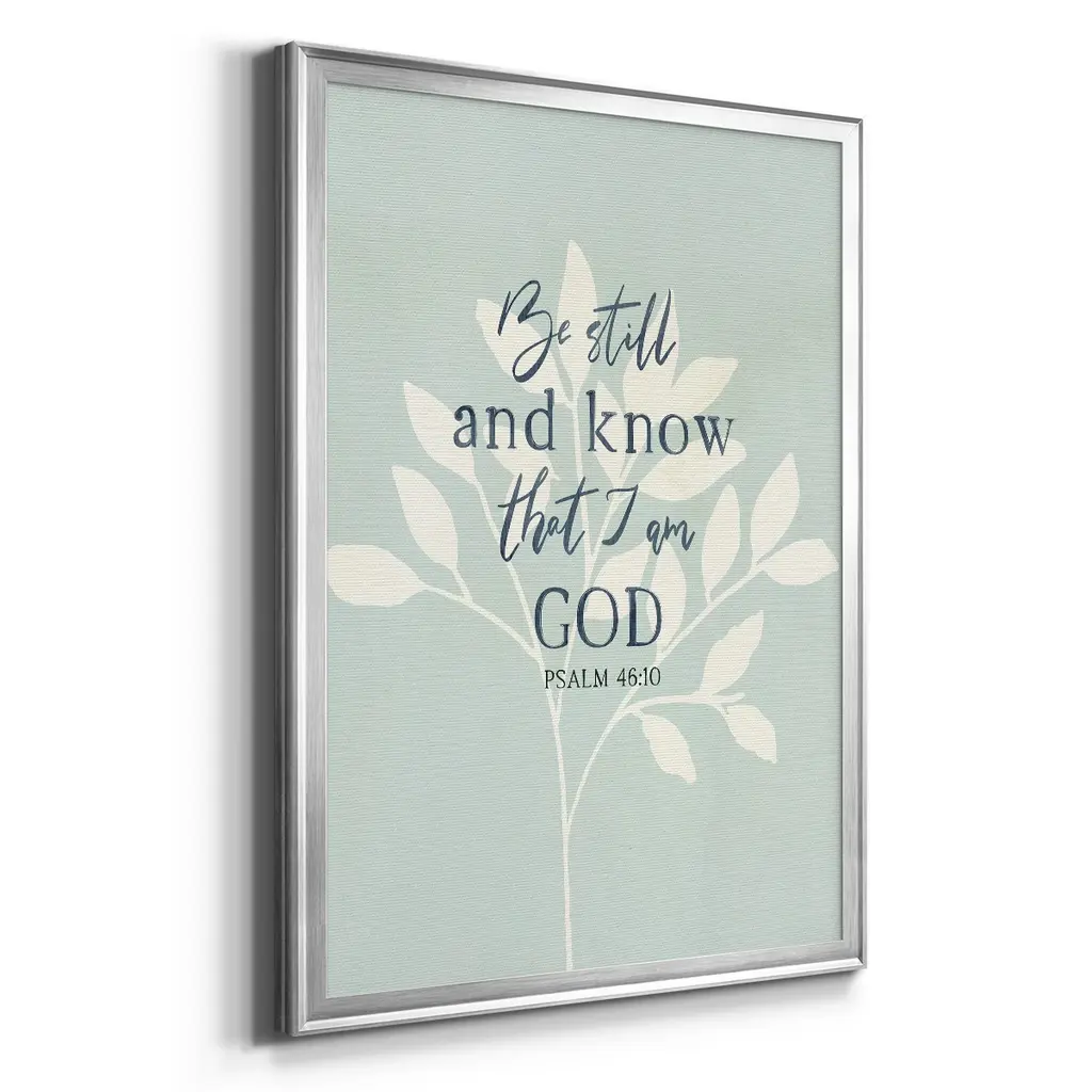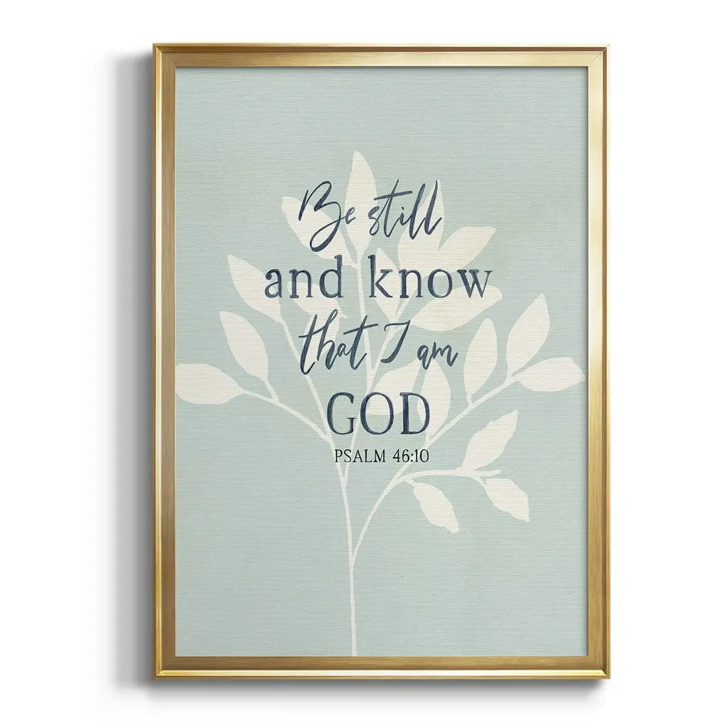 Be Still Premium Framed Print - Ready to Hang A Premium Framed Print created to last. Framed in distressed wood and available in an array of sizes and colors Featuring a beveled a solid wood stretcher bar, each piece comes ready to hand 4 SIZES AVAILABLE 30.5''X42.5'' - Overall Size 26.5'X36.5'' - Overall Size 22.5''x30.5'' - Overall Size 18.5''x24.5'' - Overall Size Each piece is made to order. Each piece comes with hanging hardware. Made in the USA Ready to Hang