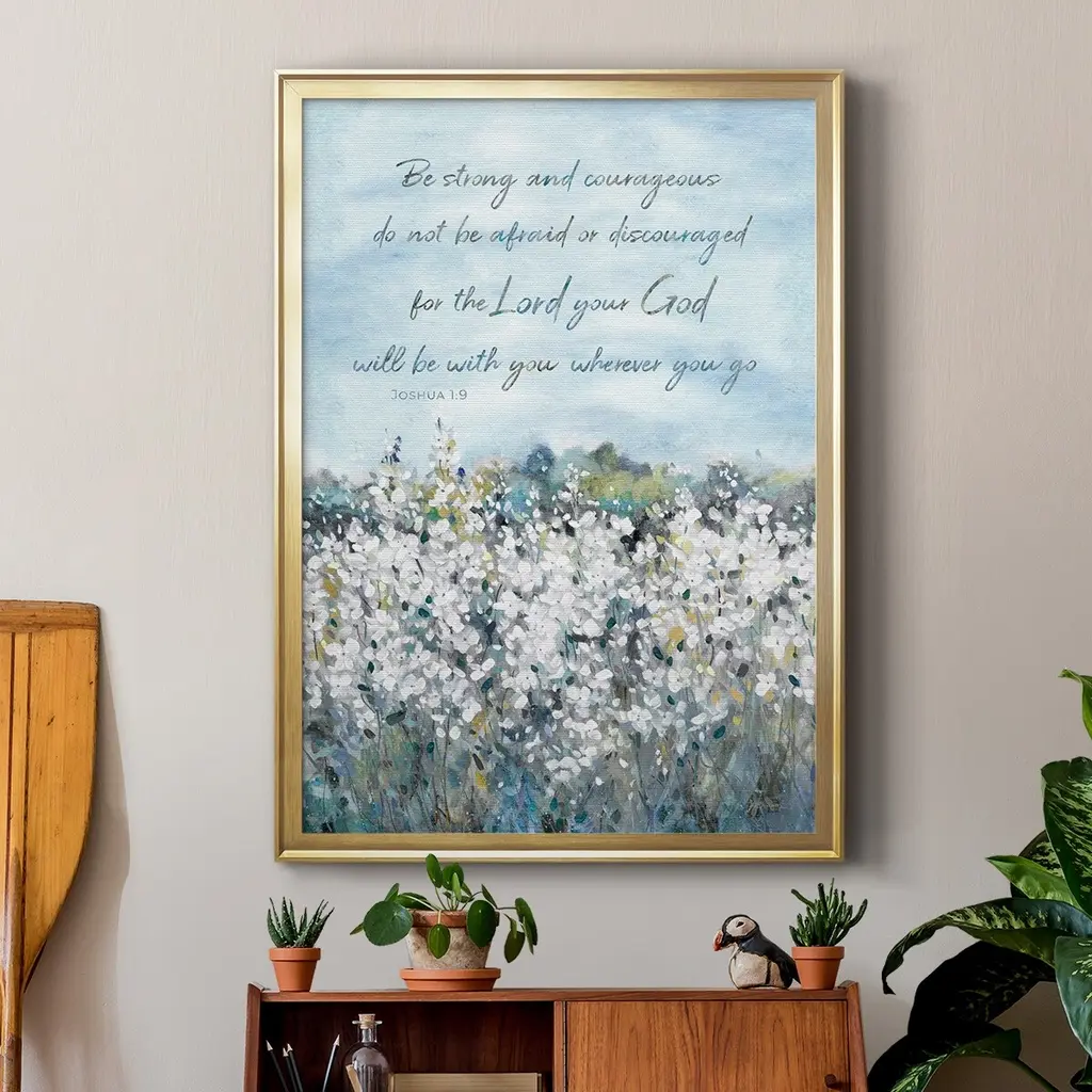 Be Strong Flower Field Premium Framed Print - Ready to Hang A Premium Framed Print created to last. Framed in distressed wood and available in an array of sizes and colors Featuring a beveled a solid wood stretcher bar, each piece comes ready to hand 4 SIZES AVAILABLE 30.5''X42.5'' - Overall Size 26.5'X36.5'' - Overall Size 22.5''x30.5'' - Overall Size 18.5''x24.5'' - Overall Size Each piece is made to order. Each piece comes with hanging hardware. Made in the USA Ready to Hang