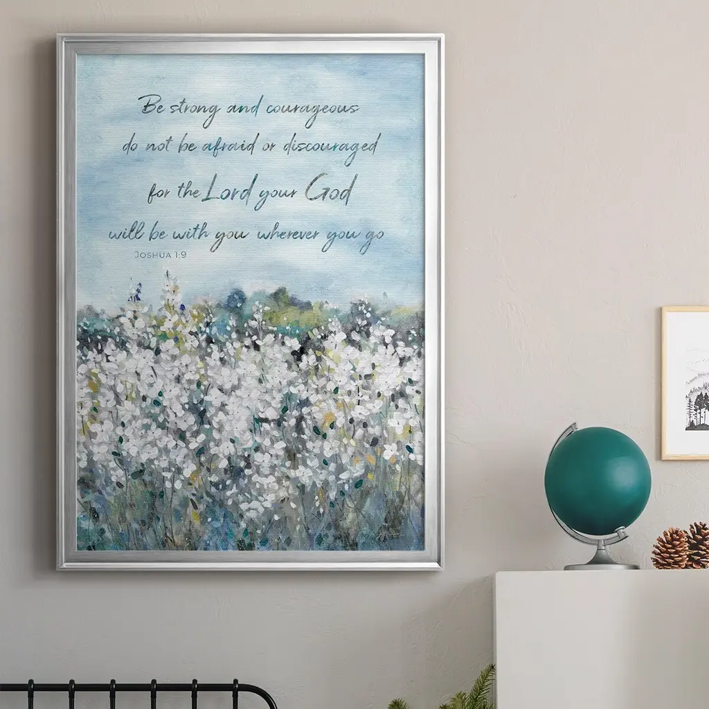 Be Strong Flower Field Premium Framed Print - Ready to Hang A Premium Framed Print created to last. Framed in distressed wood and available in an array of sizes and colors Featuring a beveled a solid wood stretcher bar, each piece comes ready to hand 4 SIZES AVAILABLE 30.5''X42.5'' - Overall Size 26.5'X36.5'' - Overall Size 22.5''x30.5'' - Overall Size 18.5''x24.5'' - Overall Size Each piece is made to order. Each piece comes with hanging hardware. Made in the USA Ready to Hang