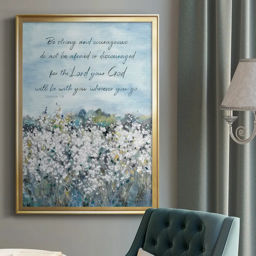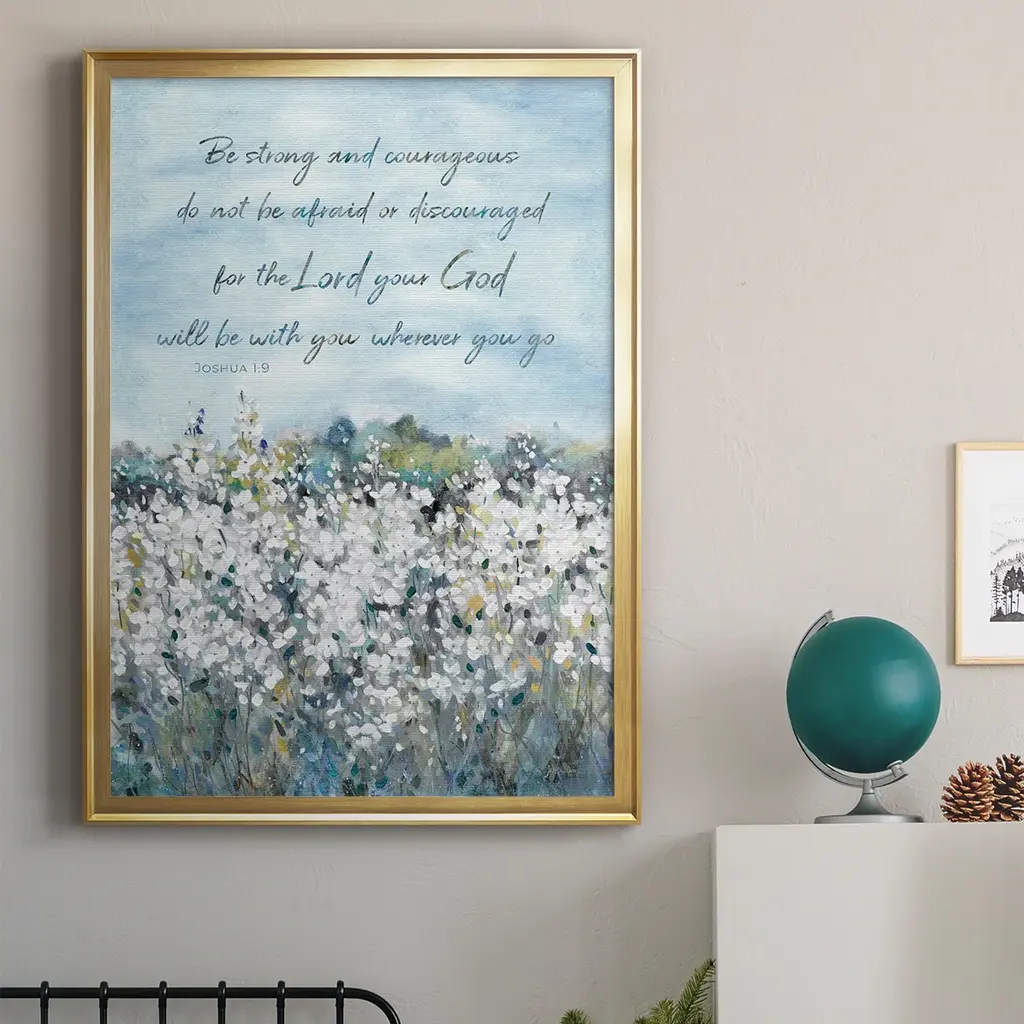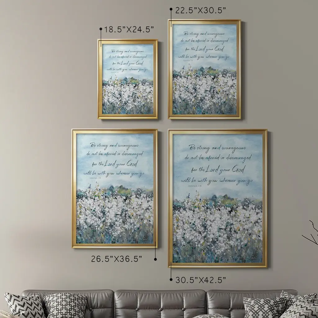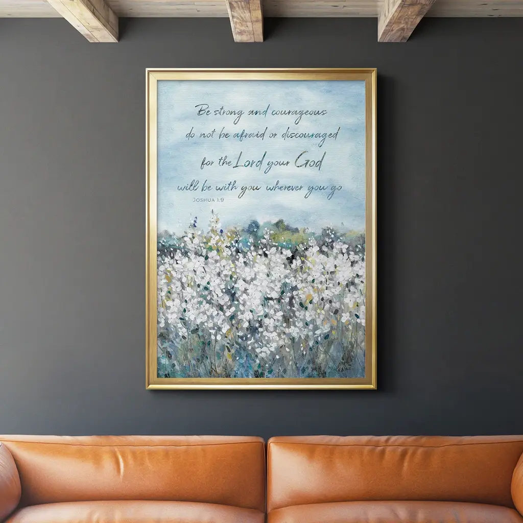 Be Strong Flower Field Premium Framed Print - Ready to Hang A Premium Framed Print created to last. Framed in distressed wood and available in an array of sizes and colors Featuring a beveled a solid wood stretcher bar, each piece comes ready to hand 4 SIZES AVAILABLE 30.5''X42.5'' - Overall Size 26.5'X36.5'' - Overall Size 22.5''x30.5'' - Overall Size 18.5''x24.5'' - Overall Size Each piece is made to order. Each piece comes with hanging hardware. Made in the USA Ready to Hang