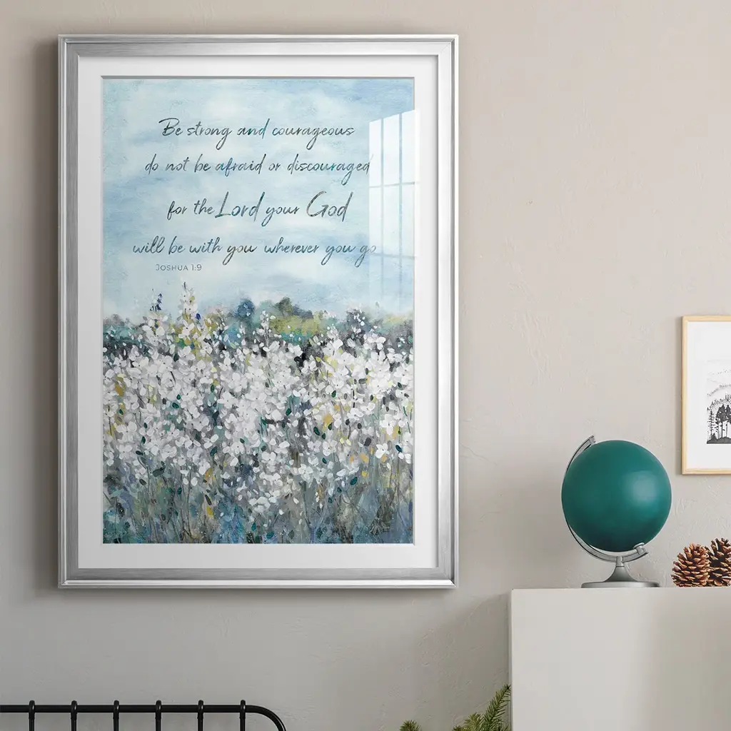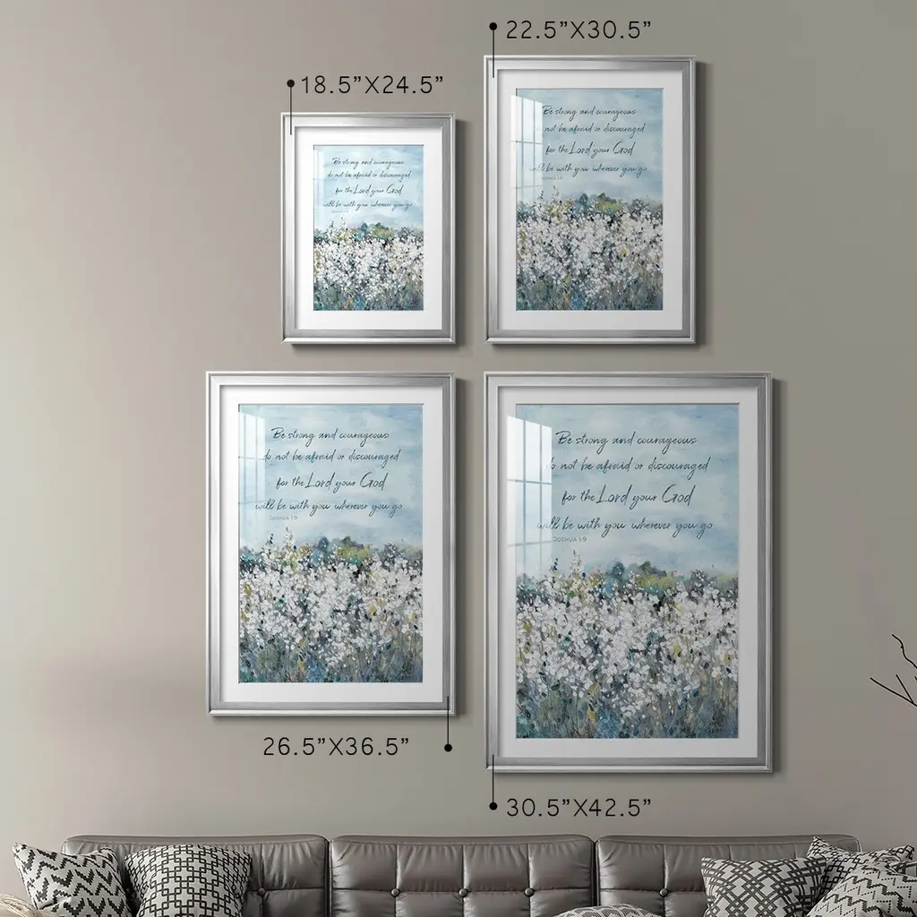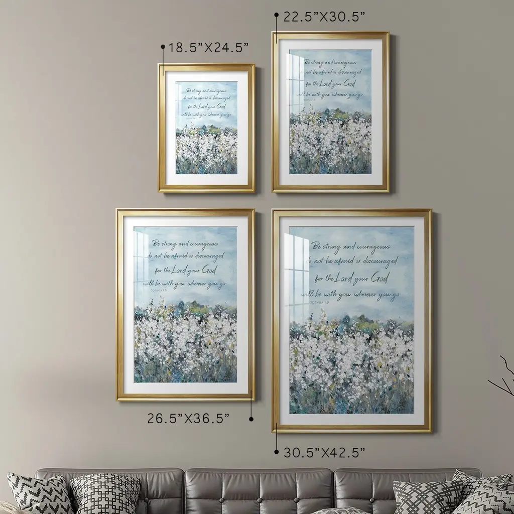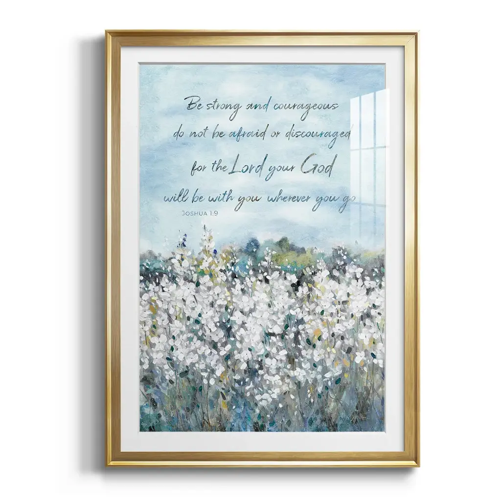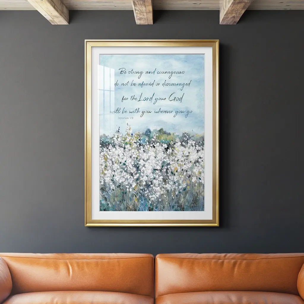 Be Strong Flower Field Premium Framed Print - Ready to Hang A Premium Framed Print created to last. Framed in distressed wood and available in an array of sizes and colors Featuring a beveled a solid wood stretcher bar, each piece comes ready to hand 4 SIZES AVAILABLE 30.5''X42.5'' - Overall Size 26.5'X36.5'' - Overall Size 22.5''x30.5'' - Overall Size 18.5''x24.5'' - Overall Size Each piece is made to order. Each piece comes with hanging hardware. Made in the USA Ready to Hang Giclee Paper Print Acrylic Glass Beveled Matt Board