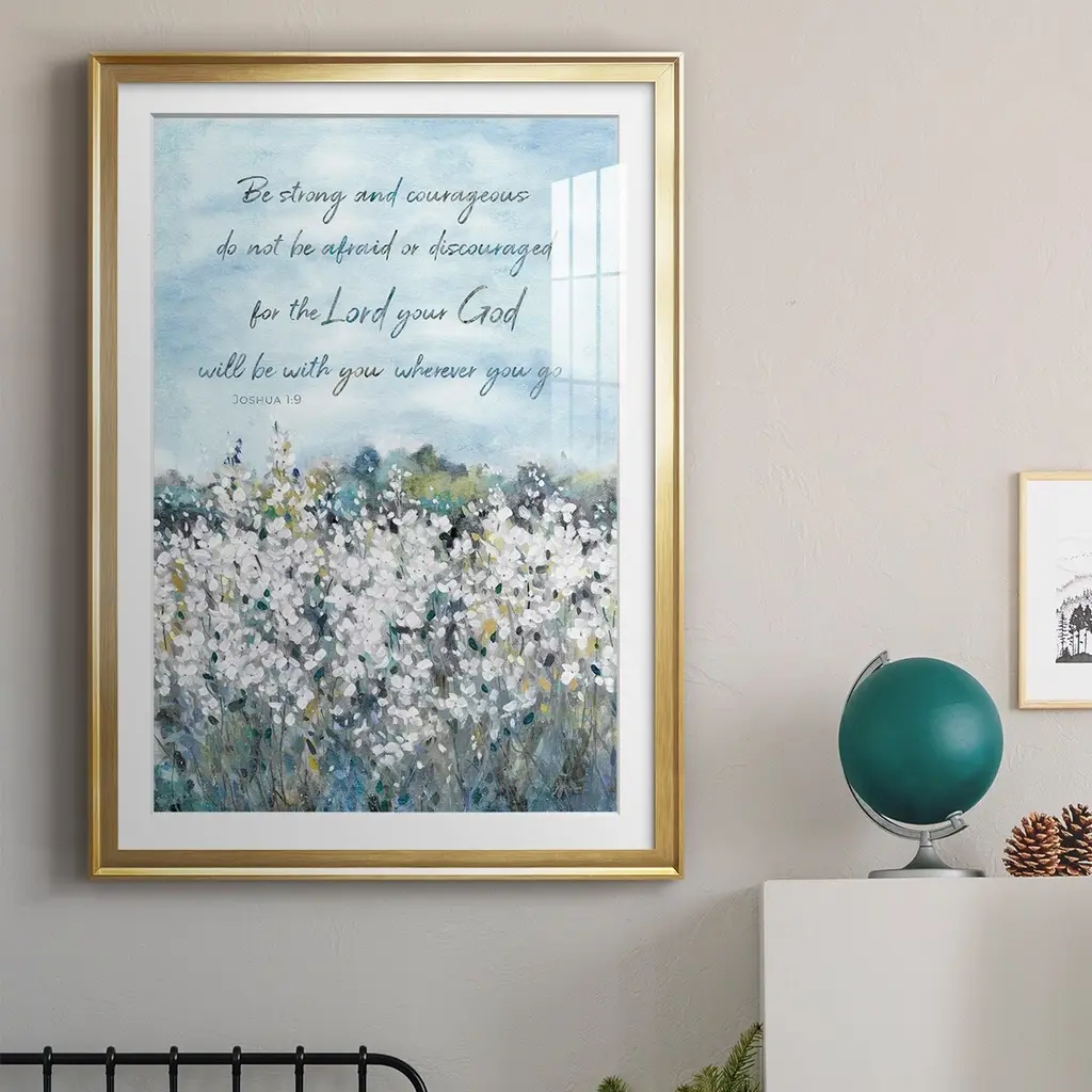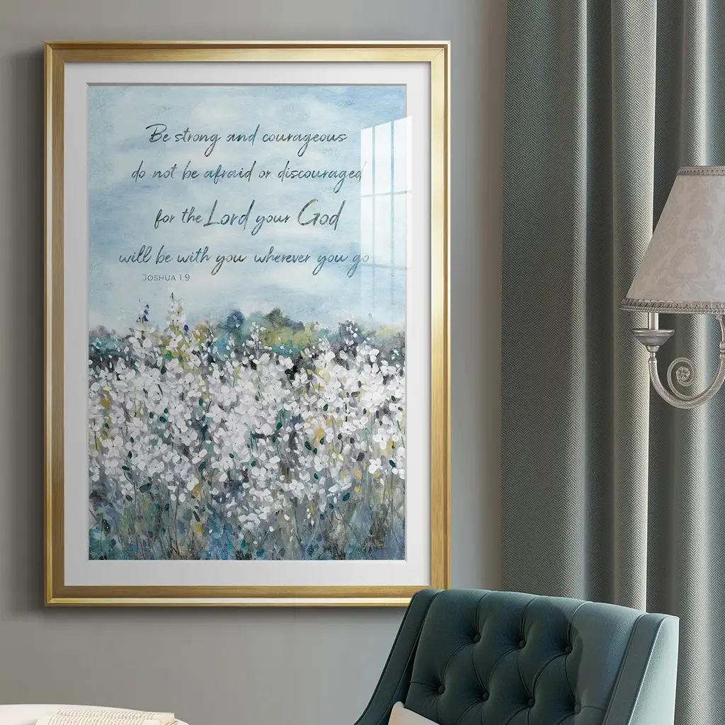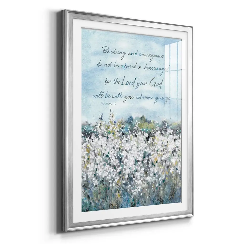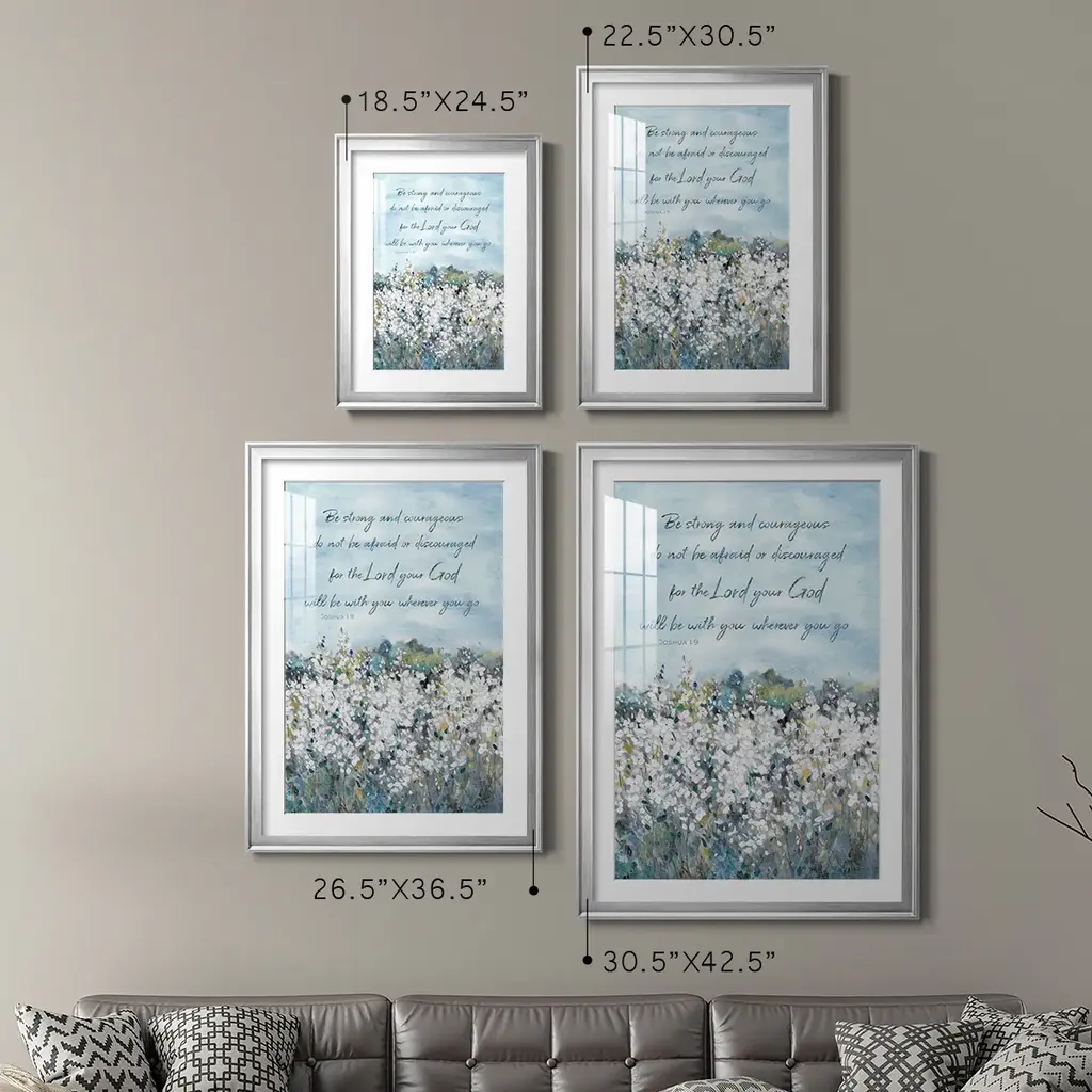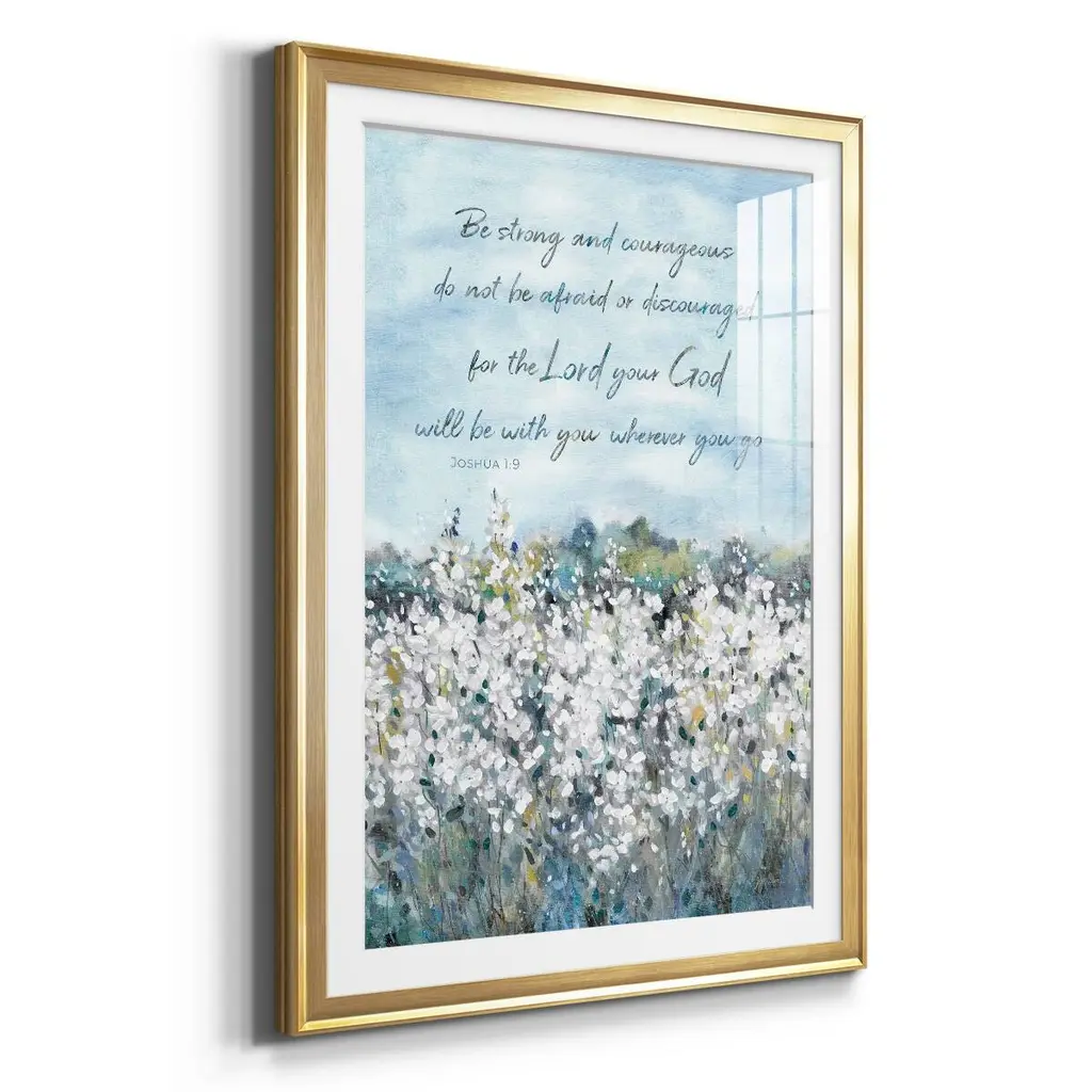 Be Strong Flower Field Premium Framed Print - Ready to Hang A Premium Framed Print created to last. Framed in distressed wood and available in an array of sizes and colors Featuring a beveled a solid wood stretcher bar, each piece comes ready to hand 4 SIZES AVAILABLE 30.5''X42.5'' - Overall Size 26.5'X36.5'' - Overall Size 22.5''x30.5'' - Overall Size 18.5''x24.5'' - Overall Size Each piece is made to order. Each piece comes with hanging hardware. Made in the USA Ready to Hang Giclee Paper Print Acrylic Glass Beveled Matt Board