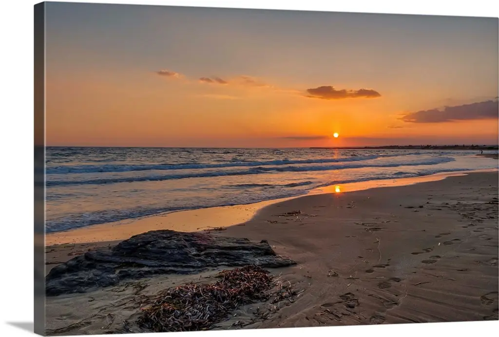 The Beach at Sunset in Spain canvas art print is sure to make an impression on anyone who sees it. This artwork is gallery wrapped around a 1-inch solid wood frame and arrives carefully packaged and entirely ready to hang on the wall. Design Art only uses the highest resolution and pigments to ensure a crisp colorful print that is never faded or pixelated. This artwork is sure to be a conversation starter in any home or office.