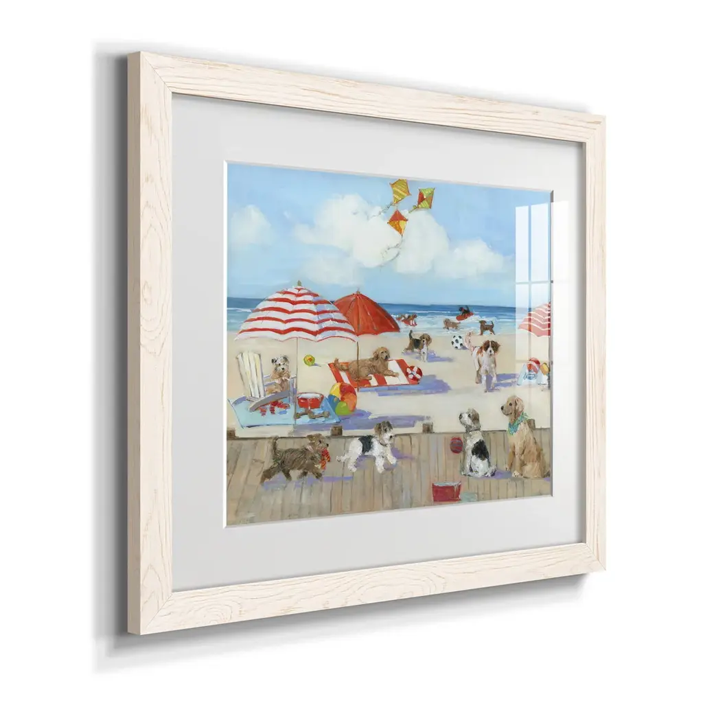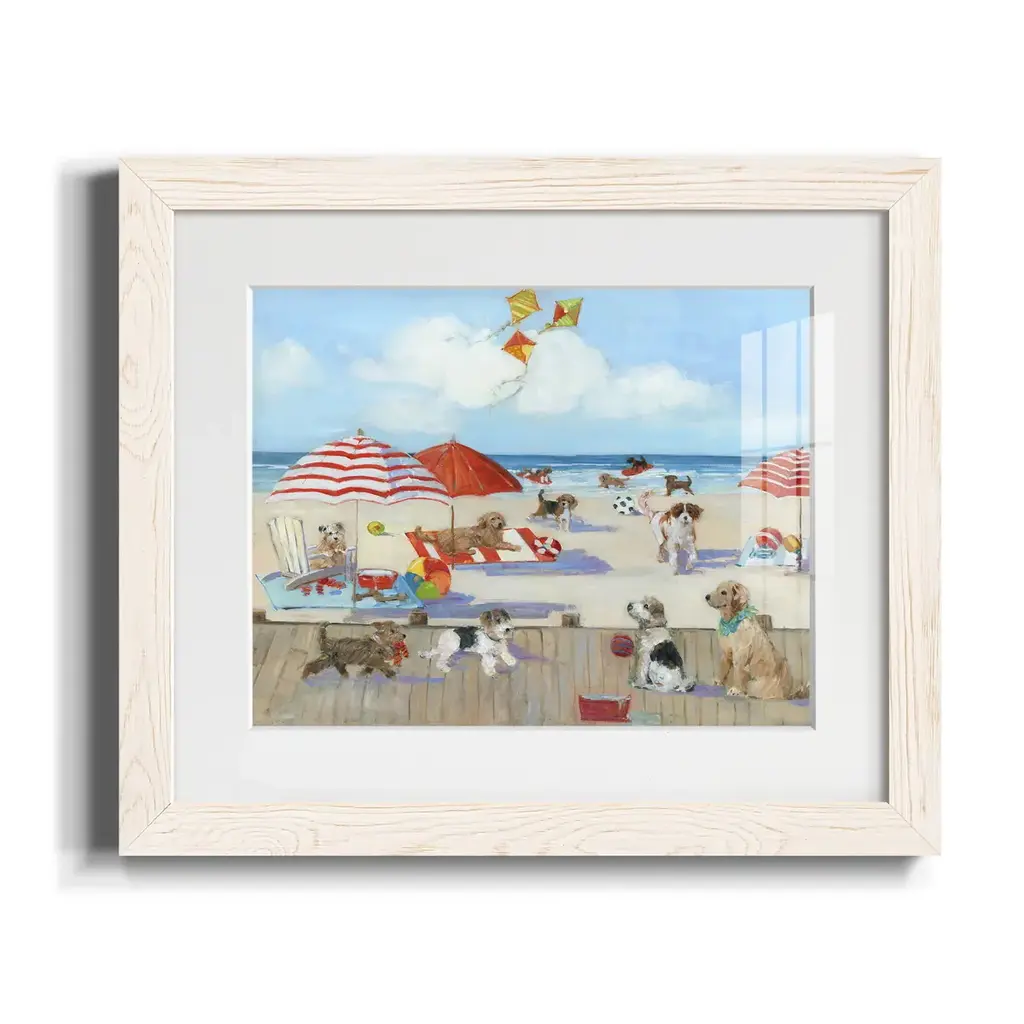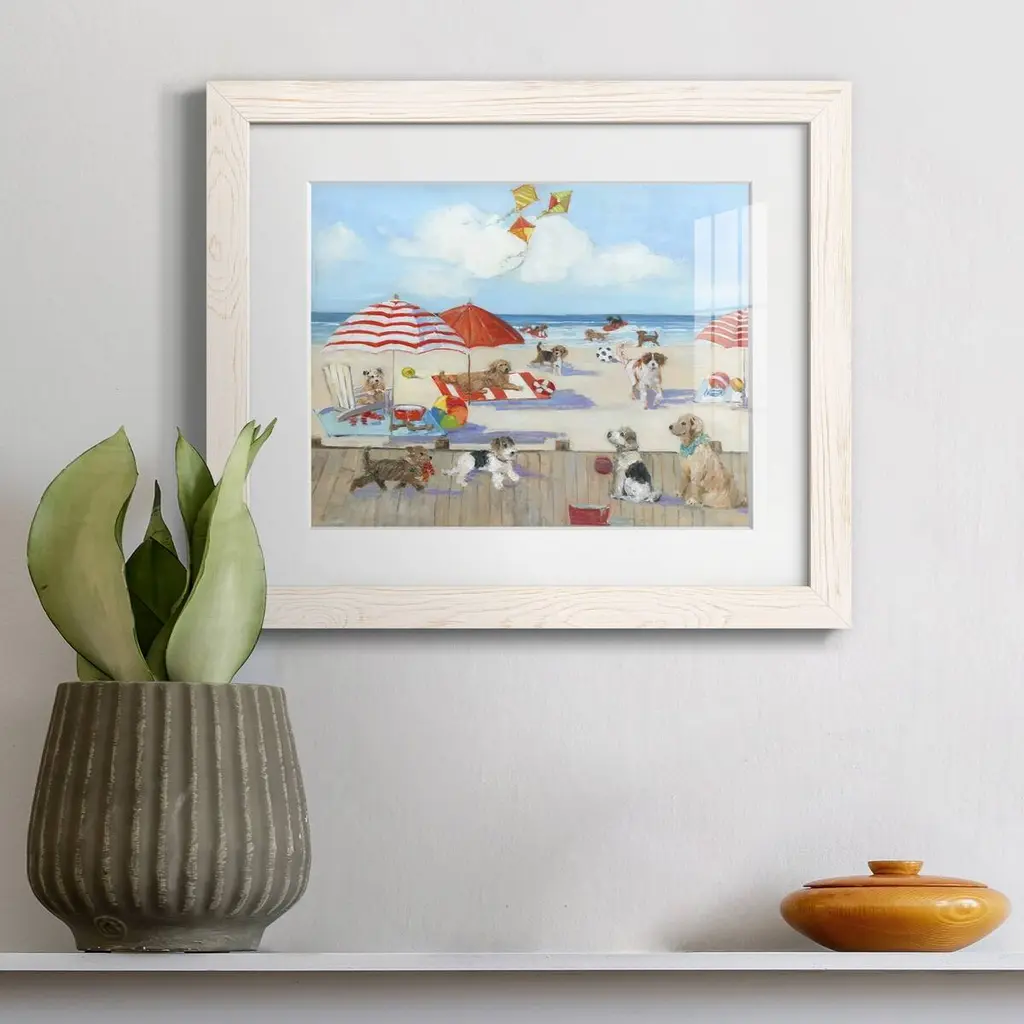 Beach Bark Park II-Premium Framed Print - Ready to Hang Framed in distressed wood and available in an array of sizes and colors Each piece is joined and assembled by hand and comes ready to hang 2 INCH BEVELED MATTE BOARD PLEXIGLASS COVERING READY TO HANG MADE IN THE USA SOLID WOOD FRAME MADE IN USA FADE RESISTANT GICLEE PRINTING on Canvas or Paper