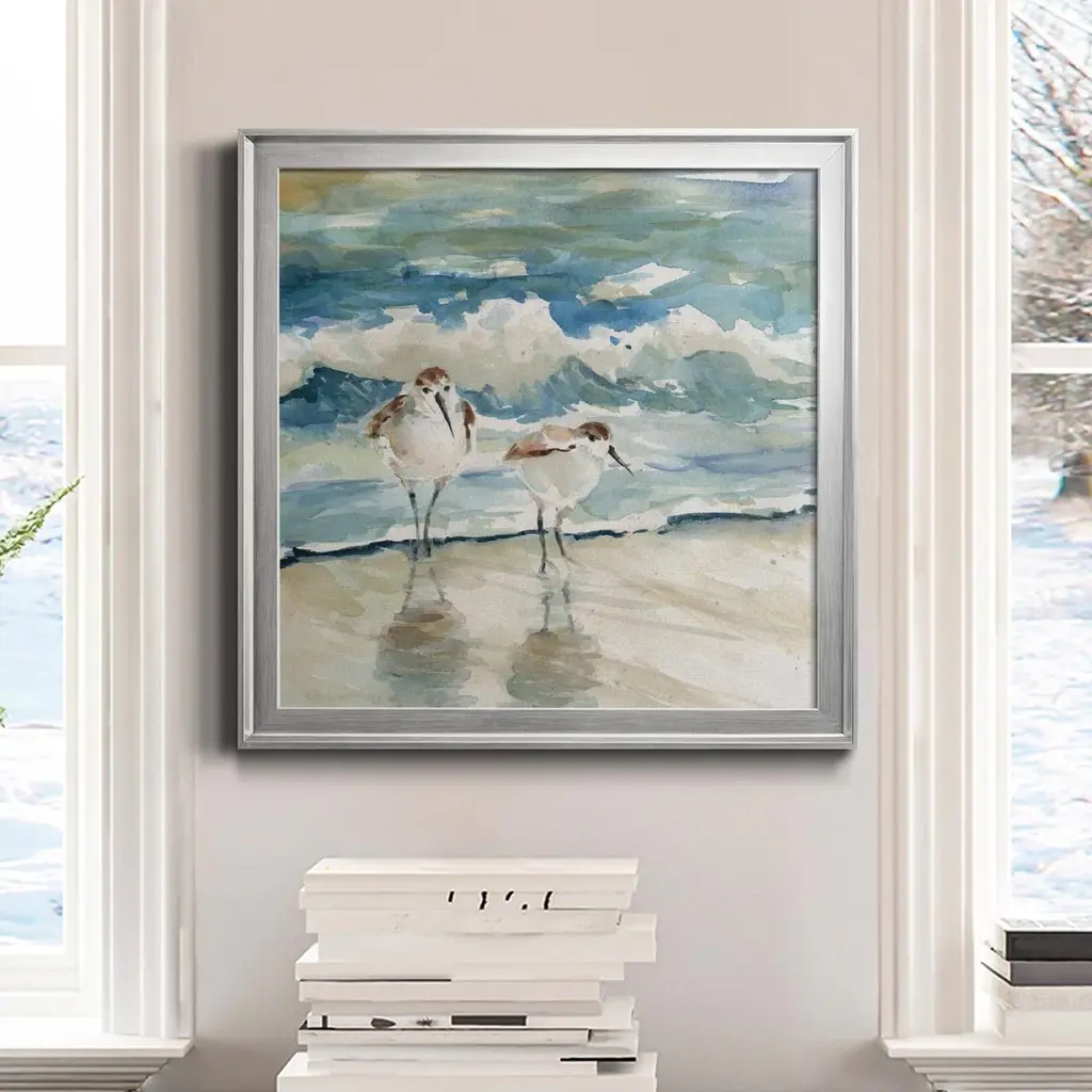 Beach Birds-Premium Gallery Wrapped Canvas - Ready to Hang A premium hand stretched gallery wrapped canvas print created to last. Featuring a beveled a solid wood stretcher bar, each piece comes ready to hand 5 SIZES AVAILABLE 17.5''X17.5'' - Overall Size 22.5''x22.5'' - Overall Size 26.5''x26.5'' - Overall Size 30.5''x30.5'' - Overall Size 34.5''x34.5'' - Overall Size Each piece is made to order. Built to Last Each piece comes ready to hang Solid wood stretcher Fade and Water resistant Made domestically