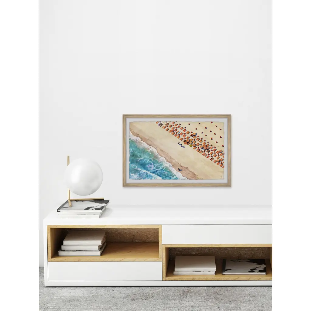 'Beach Blanket Rows' Framed Painting Print - Multi-Color - 12 X 8