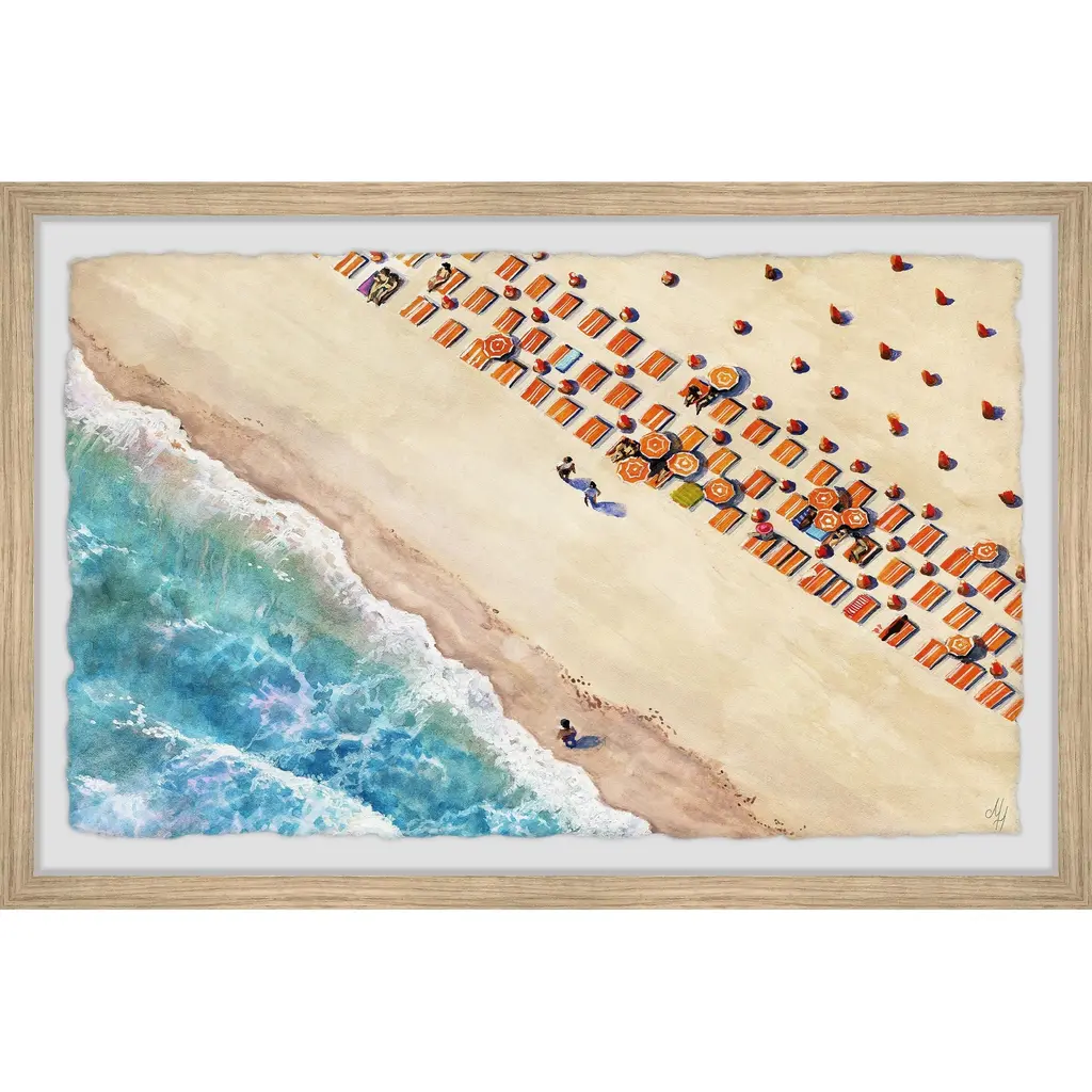 'Beach Blanket Rows' Framed Painting Print - Multi-Color - 36 X 24