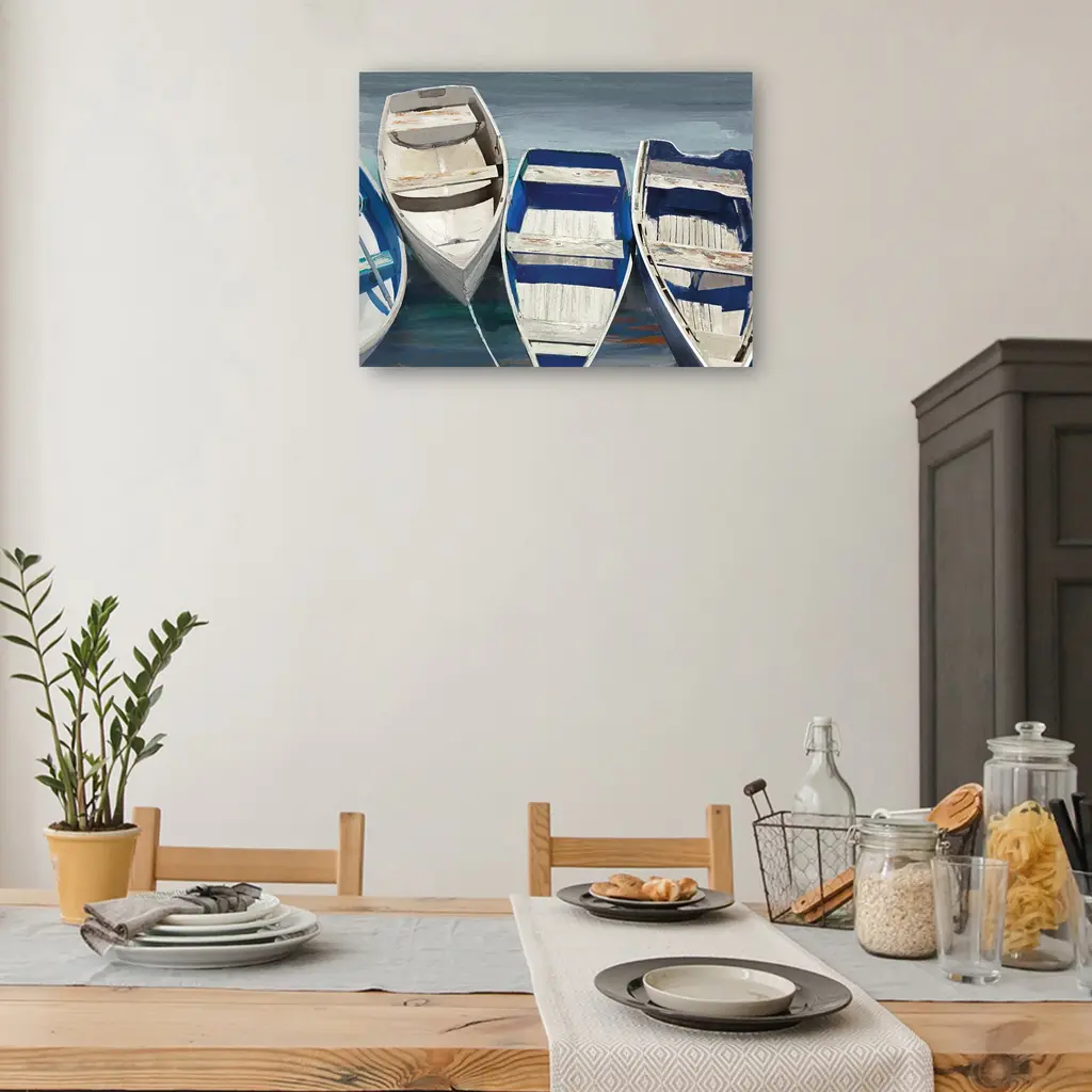 Beach Boats by Studio Arts is produced with printing that covers the entirety of the canvas for a sleek and stylish museum-quality look. Our framed prints are made by expert craftsmen who strive to make each canvas the masterpiece that your home deserves. Each of our framed canvas art prints is hand-crafted and made-to-order to give it a high quality and professional appearance. To ensure the clearest, most accurate depiction of the artists' original vision, we print each work of art on bright white polyester canvas, ensuring the most vivid display and precise details. Please note: colors may differ slightly due to variation in monitors. READY TO HANG - Our canvas prints come with preinstalled D-rings attached to the back of the product to make hanging and displaying your new masterpiece a breeze.