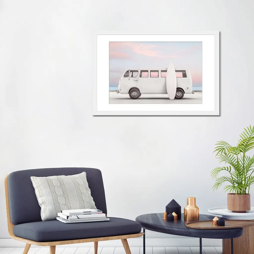Seen first at One Kings Lane: Ideal for adding a coastal note to your decor, this giclée reproduction of a beach buggy is printed on matte paper and displayed under glass with a white double mat in a wood frame. Arrives ready to hang.