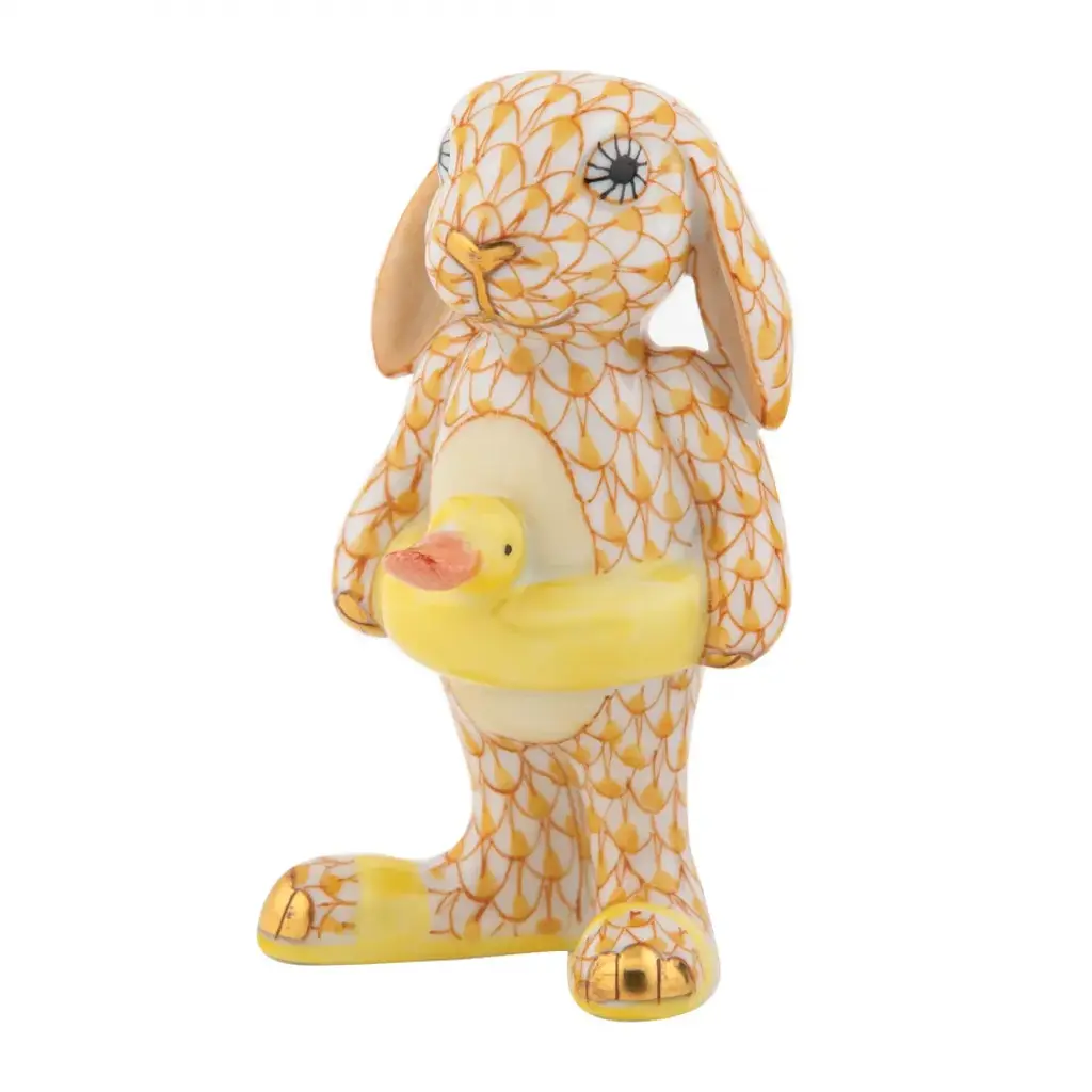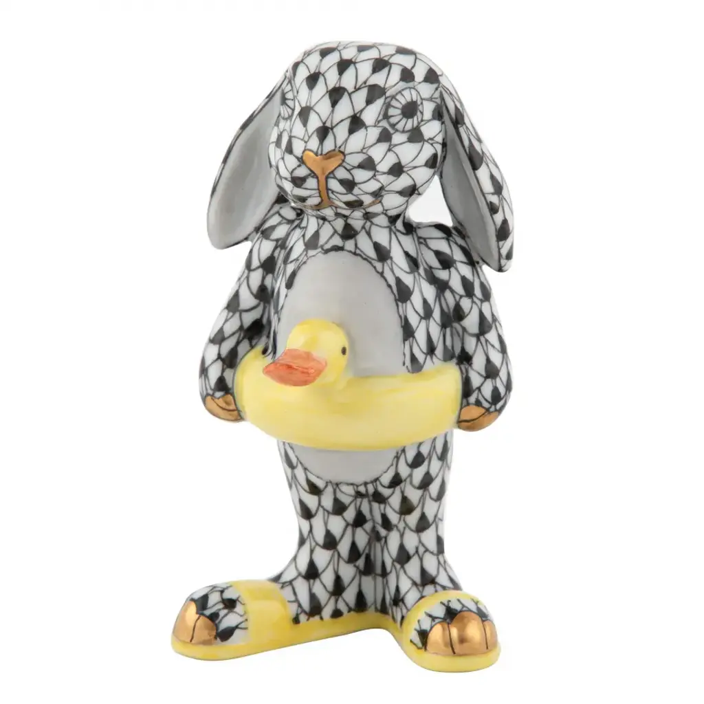 Endearing animals meek and bold, large and small, demure and majestic eagerly await the chance to melt your heart and warm your home. Each is brought to life by the skilled hands of artisans crafting and painting these charming porcelain creatures. The famous fishnet décor adorning many of the animals took form in 1858 when a Herend painter became inspired by a fishscale design he saw on a Chinese porcelain plate and painted a similar pattern onto a rooster figurine to imitate feathers. The rest is history, with the fishnet design now a Herend signature prized worldwide. Now the biggest porcelain manufactory in Europe, Herend was founded in 1826 to produce earthenware in the small Hungarian village for which it was named. At the time, Hungary was flooded with low-cost pottery, but in 1839, Mor Fischer became the Manufactory’s new owner and he decided to focus on producing dinnerware replacement pieces for Europe’s royal families to complement their valuable porcelain patterns from Germany and the Far East. As his client base grew, Fischer commissioned his artists to begin designing dinnerware patterns of their own. Queen Victoria’s 1851 purchase of a large set for Windsor Castle was a milestone, setting the stage for aristocrats throughout Europe to clamor for Herend in their estates. In the 1850s, Herend added meticulously-crafted figurines to its creations. Herend’s trademark fishnet pattern, which is widely recognized and prized as Herend’s signature design, started in 1858 when an artist who was intrigued with a Chinese plate’s fish scale design painted it onto a rooster figurine to imitate feathers.