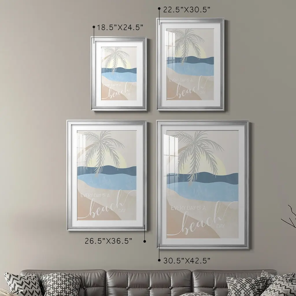 Beach Day Premium Framed Print - Ready to Hang A Premium Framed Print created to last. Framed in distressed wood and available in an array of sizes and colors Featuring a beveled a solid wood stretcher bar, each piece comes ready to hand 4 SIZES AVAILABLE 30.5''X42.5'' - Overall Size 26.5'X36.5'' - Overall Size 22.5''x30.5'' - Overall Size 18.5''x24.5'' - Overall Size Each piece is made to order. Each piece comes with hanging hardware. Made in the USA Ready to Hang Giclee Paper Print Acrylic Glass Beveled Matt Board