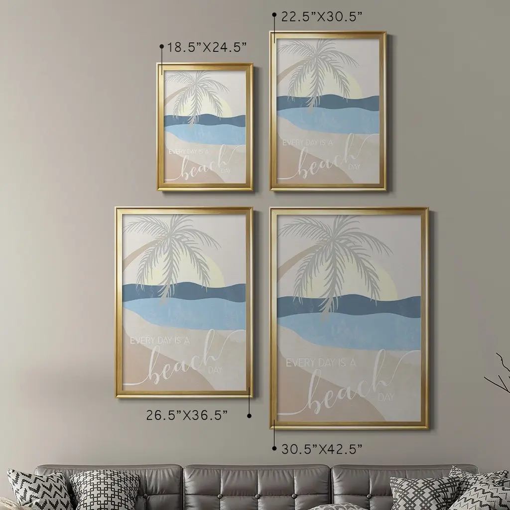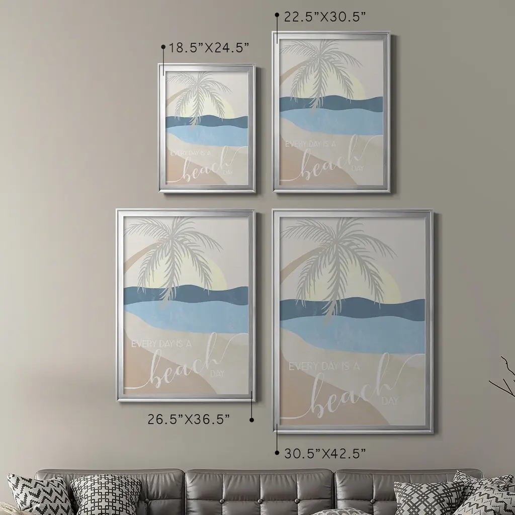 Beach Day Premium Framed Print - Ready to Hang A Premium Framed Print created to last. Framed in distressed wood and available in an array of sizes and colors Featuring a beveled a solid wood stretcher bar, each piece comes ready to hand 4 SIZES AVAILABLE 30.5''X42.5'' - Overall Size 26.5'X36.5'' - Overall Size 22.5''x30.5'' - Overall Size 18.5''x24.5'' - Overall Size Each piece is made to order. Each piece comes with hanging hardware. Made in the USA Ready to Hang