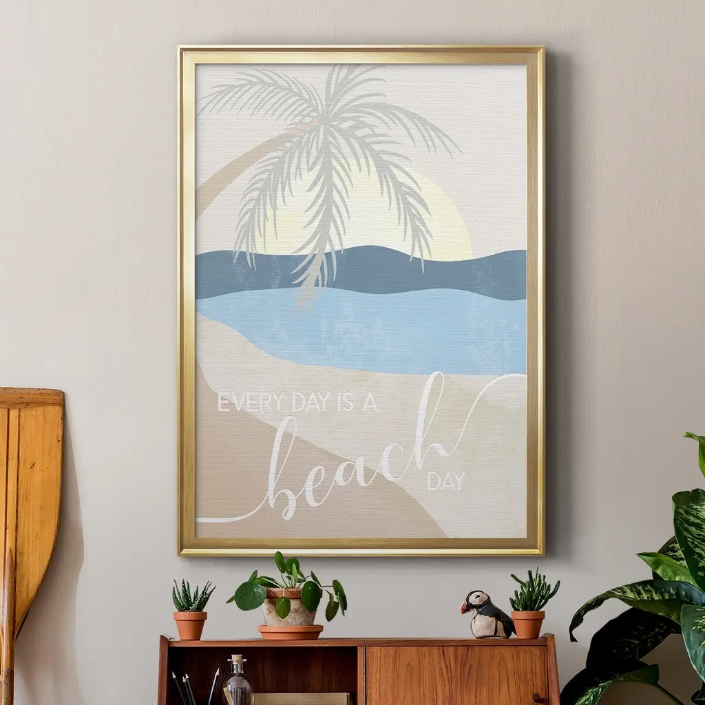 Beach Day Premium Framed Print - Ready to Hang A Premium Framed Print created to last. Framed in distressed wood and available in an array of sizes and colors Featuring a beveled a solid wood stretcher bar, each piece comes ready to hand 4 SIZES AVAILABLE 30.5''X42.5'' - Overall Size 26.5'X36.5'' - Overall Size 22.5''x30.5'' - Overall Size 18.5''x24.5'' - Overall Size Each piece is made to order. Each piece comes with hanging hardware. Made in the USA Ready to Hang