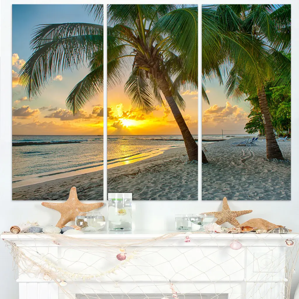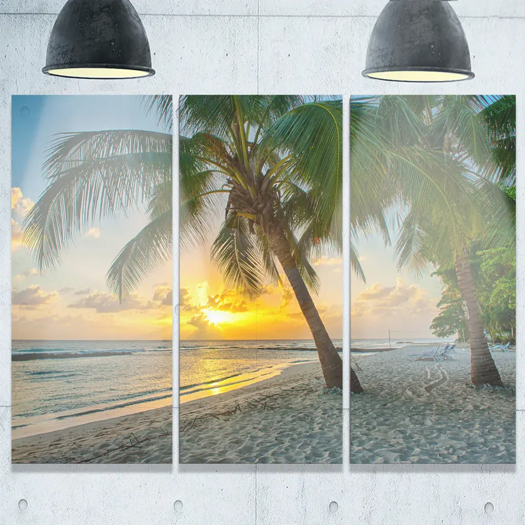 "Beach In Caribbean Island Of Barbados" Metal Wall Art, 3 Panels, 36"x28"
