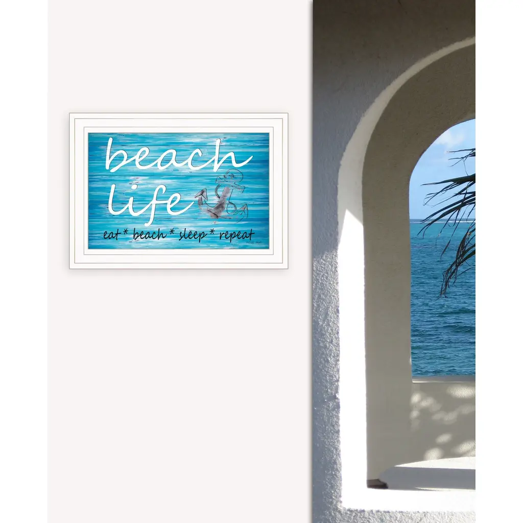 The beach life 1 white framed print wall art is the perfect decorative accessory for your home. This print is a visual artistic expression that allows you to decorate your space in style. Reproduced for you on paper, this hanging decorative accent will be a trendy and fashionable way to dress your walls. Adding this hanging wall art to your space to make your room feel more finished and attractive. Utilize this opportunity to create a focal point in the room with this fabulous wall decor option. 11" H x 15" W x 1" D
