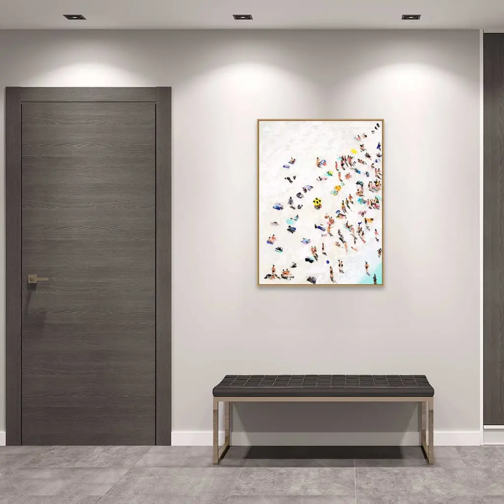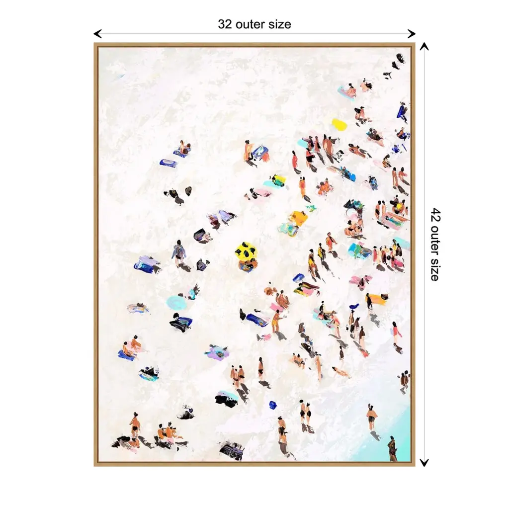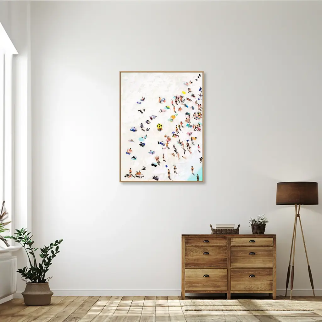 ART DESCRIPTION: On a sunny summer day, beachcombers flock to sandy shores, spreading their towels and getting ready to wade into the turquoise waters. These abstract figures cast deep shadows that contrast their colorful beachwear. This Amanti Art canvas art print was created by Urban Road and printed by Amanti Art in Madison WI. The canvas is stretched by hand and finished with a float frame. Individually made using traditional custom framing techniques, it has the quality you would expect from your local frame shop. Features: CUSTOM CANVAS ARTWORK DETAILS: Beach Life by Urban Road. ART DESCRIPTION: On a sunny summer day, beachcombers flock to sandy shores, spreading their towels and getting ready to wade into the turquoise waters. These abstract figures cast deep shadows that contrast their colorful beachwear. FRAME DETAILS: The canvas is framed in the Sylvie Maple frame, which is a modern, float frame with natural maple woodgrain coloring and dramatic depth. The frame measures 1 in. wide and stands 2 in. off the wall. The canvas appears as if it is floating in the frame because it has a narrow gap between the edge of the canvas and the frame. The overall size of this framed canvas print measures 32 in. W x 42 in. H. QUALITY AND AUTHENTICITY: Canvas is printed with high-quality, fade-resistant inks for picture-perfect detail and incredible depth of color. Canvas is stretched across a solid surface to resist sagging. We use only premium, high-tension canvas. Our exclusive stretching techniques hide corner folds and provide a taut canvas surface. The artwork is authentically licensed. HASSLE-FREE HANGING: Ready to hang for easy installation. ASSEMBLED IN THE USA: Each piece is assembled to order in Madison, WI USA. FOR HOME OR COMMERCIAL USE: Because of our attention to detail and focus on artistry, architects, interior designers, and homeowners alike choose this framed canvas artwork to create beautiful living spaces.