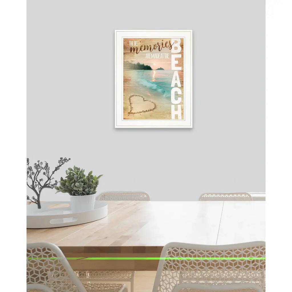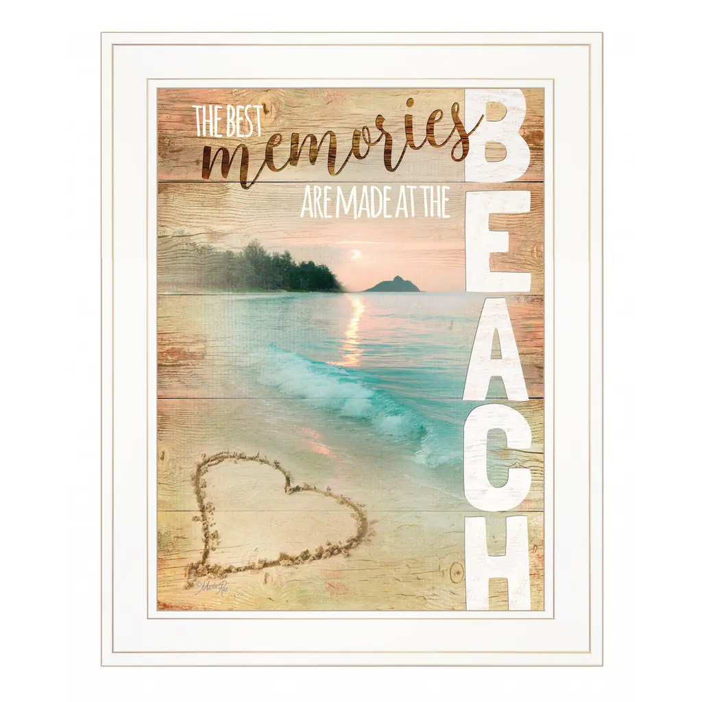 The beach memories 1 white framed print wall art is the perfect decorative accessory for your home. This print is a visual artistic expression that allows you to decorate your space in style. Reproduced for you on wood, this hanging decorative accent will be a trendy and fashionable way to dress your walls in a rustic and modern farmhouse vibe. Hang on your wall to add some up to date fashion and decoration. Utilize this opportunity to create a focal point in the room with this fabulous wall decor option. 19" H x 15" W x 1" D