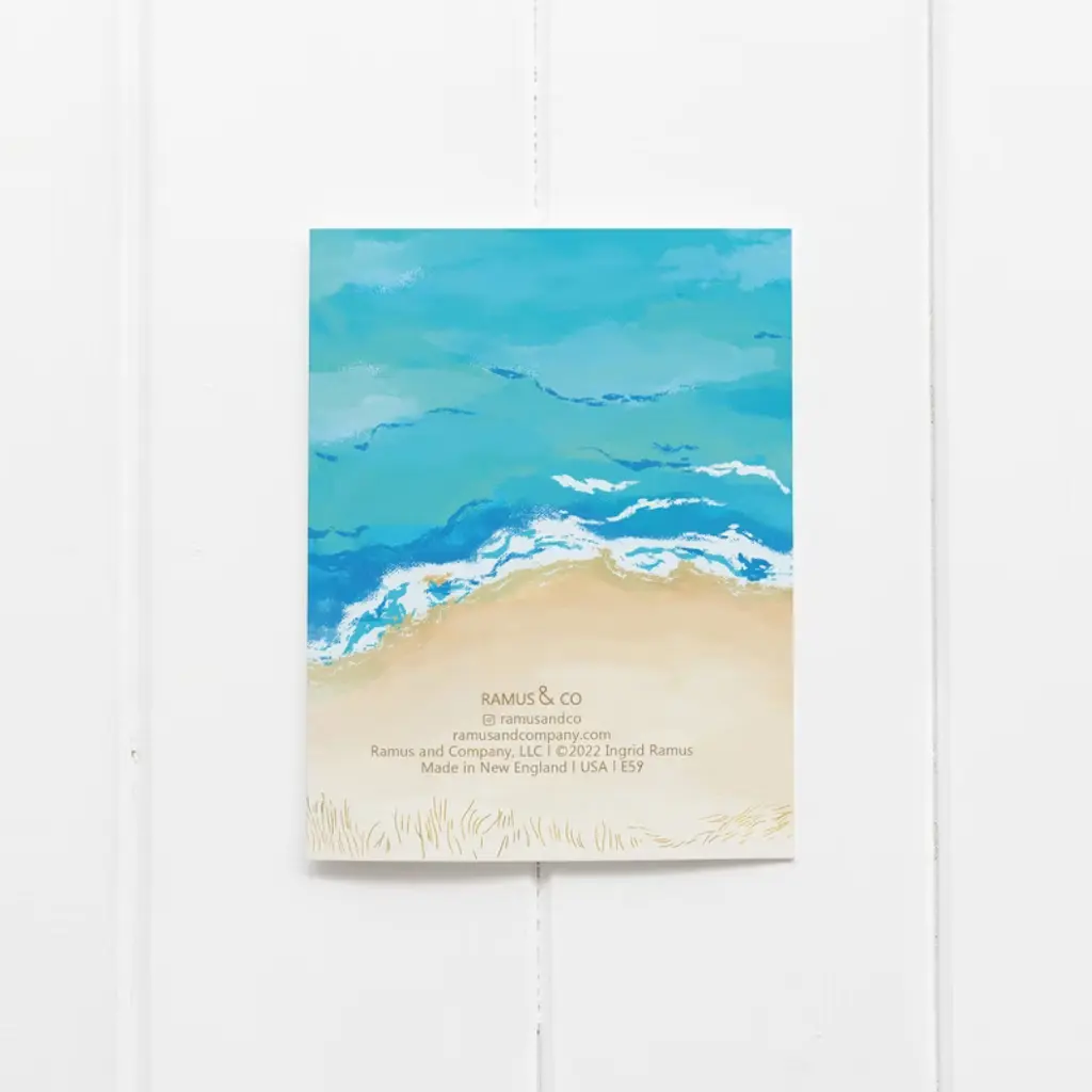 This 8-pack of greeting cards is elegantly illustrated by artist Ingrid Ramus, founder and owner of the Ramus & Co brand. Artwork features a colorful beach scene. All greeting cards are made in the USA on heavyweight uncoated and locally-sourced and manufactured card stock. Each card is accompanied by a hand-embossed envelope made with heavyweight 95lb paper and a peel-and-stick flap - no licking envelopes here! All Ramus & Co. greeting cards are printed on FSC and SFI certified paper sourced from a regional mill that harnesses 66% of its energy from on-site sustainable sources, such as emission-free hydroelectricity and biomass co-generation from wood waste. All 8 greeting cards come packaged as a boxed set. Husband-and-wife team Calvin and Ingrid Ramus founded Ramus & Company in 2019, in New England, USA. Ingrid, the creative designer behind the brand, originates from Mexico, where she cultivated her skills in fashion and textile design. Drawing from her unique and inquisitive perspective on preppy style, Ingrid prolifically designs whimsical yet classic stationery and lifestyle items.