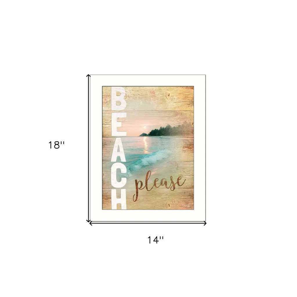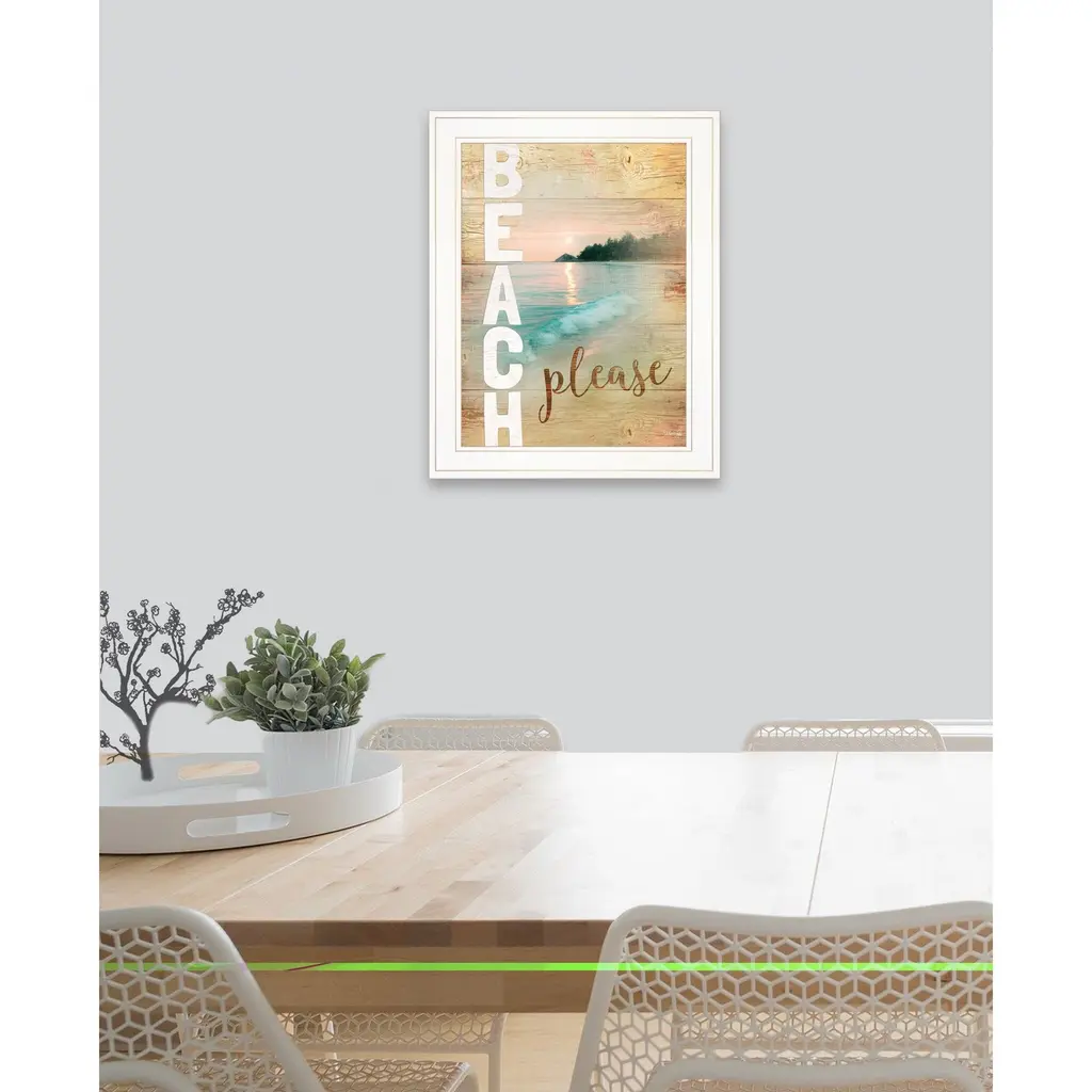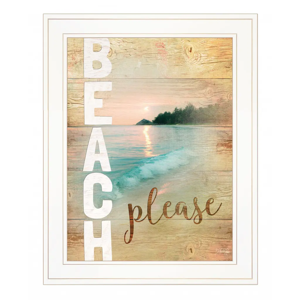 Add an air of fashion to your room and rejuvenate the space with this beach please 1 white framed print wall art. This print is a visual artistic expression that allows you to decorate your space in style. Reproduced for you on wood, this hanging decorative accent will be a trendy and fashionable way to dress your walls in a rustic and modern farmhouse vibe. Hang on your wall to add some up to date fashion and decoration. Utilize this opportunity to create a focal point in the room with this fabulous wall decor option. 19" H x 15" W x 1" D
