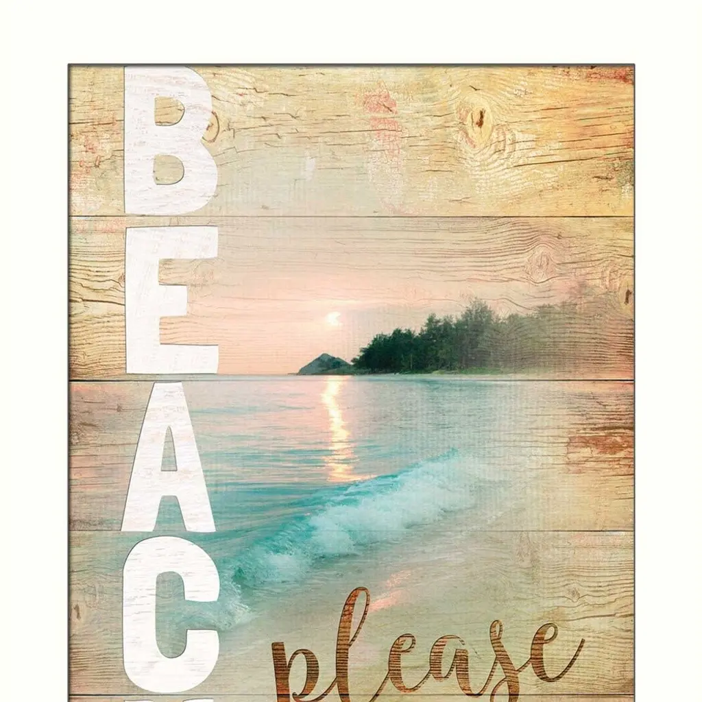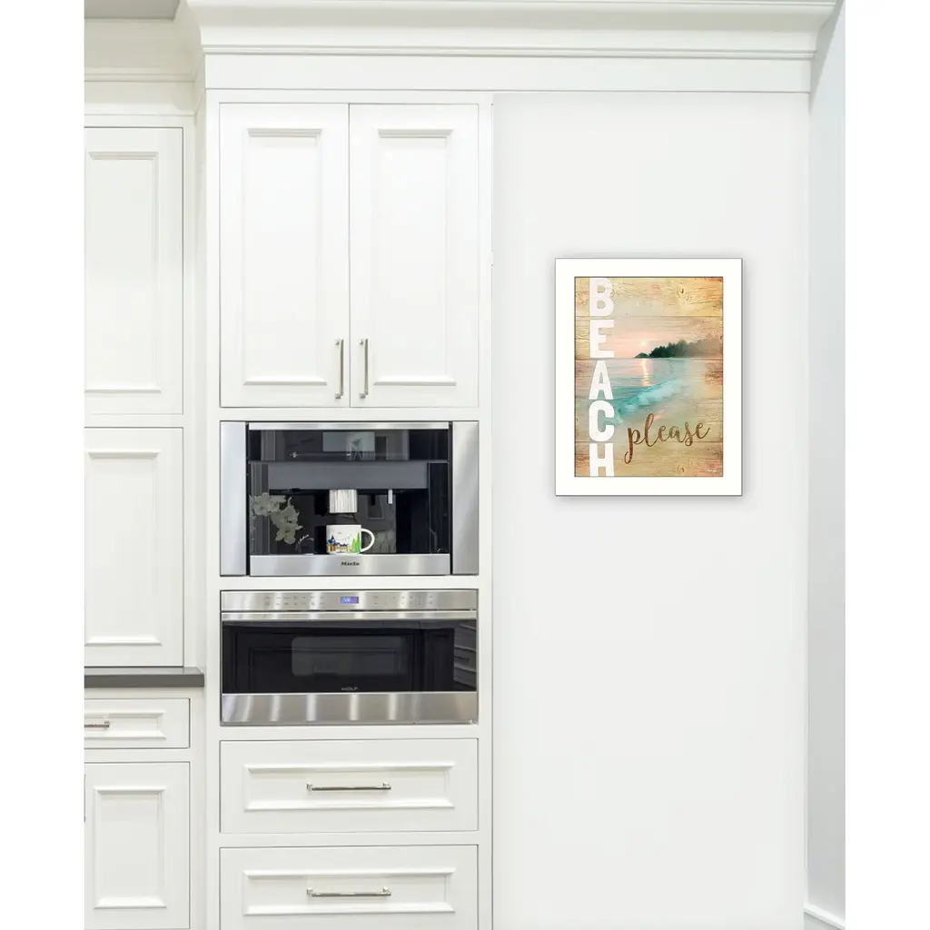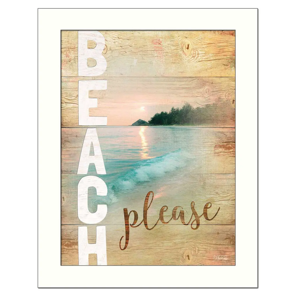 Unique and decorative, this beach please 3 white framed print wall art will leave a lasting impression. This print is a visual artistic expression that allows you to decorate your space in style. Reproduced for you on wood, this hanging decorative accent will be a trendy and fashionable way to dress your walls in a rustic and modern farmhouse vibe. Hang on your wall to add some up to date fashion and decoration. Instantly liven up your space with this art that brings color and dimension to your walls. 18" H x 14" W x 1" D