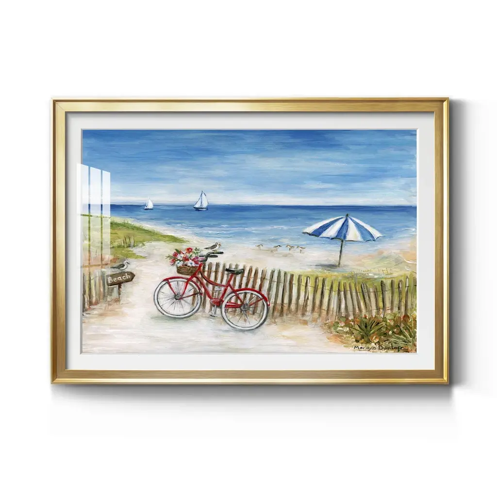 Beach Ride II Premium Framed Print - Ready to Hang A Premium Framed Print created to last. Framed in distressed wood and available in an array of sizes and colors Featuring a beveled a solid wood stretcher bar, each piece comes ready to hand 4 SIZES AVAILABLE 30.5''X42.5'' - Overall Size 26.5'X36.5'' - Overall Size 22''x30'' - Overall Size 18''x24'' - Overall Size Each piece is made to order. Each piece comes with hanging hardware. Made in the USA Ready to Hang Giclee Paper Print Acrylic Glass Beveled Matt Board