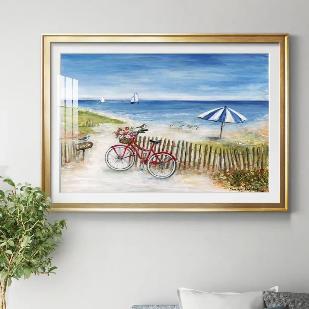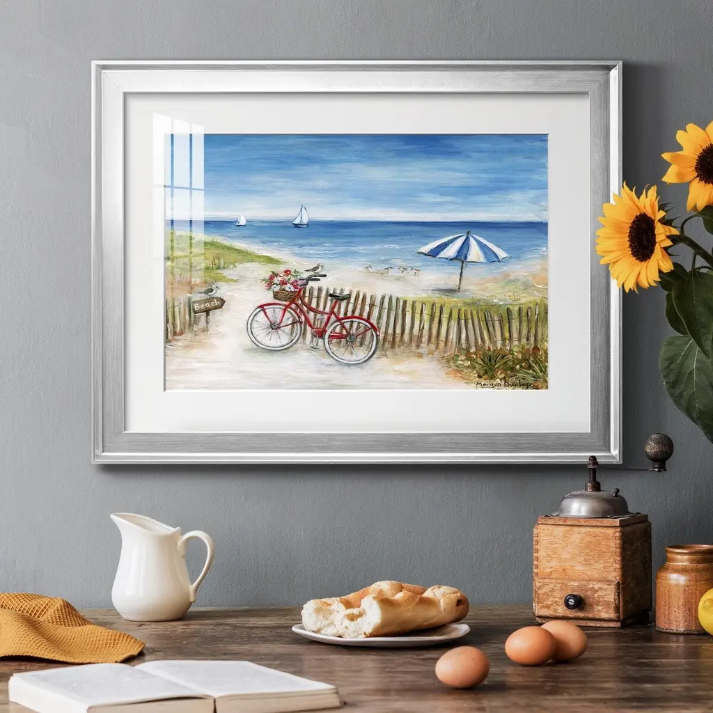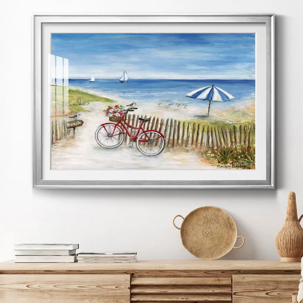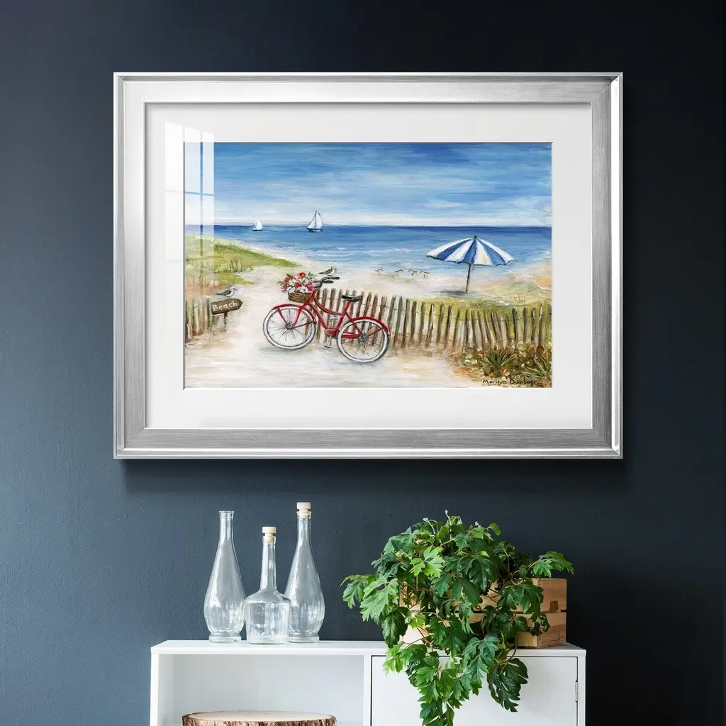 Beach Ride II Premium Framed Print - Ready to Hang A Premium Framed Print created to last. Framed in distressed wood and available in an array of sizes and colors Featuring a beveled a solid wood stretcher bar, each piece comes ready to hand 4 SIZES AVAILABLE 30.5''X42.5'' - Overall Size 26.5'X36.5'' - Overall Size 22''x30'' - Overall Size 18''x24'' - Overall Size Each piece is made to order. Each piece comes with hanging hardware. Made in the USA Ready to Hang Giclee Paper Print Acrylic Glass Beveled Matt Board