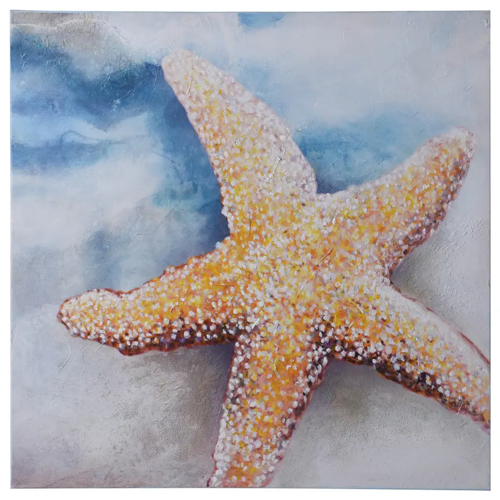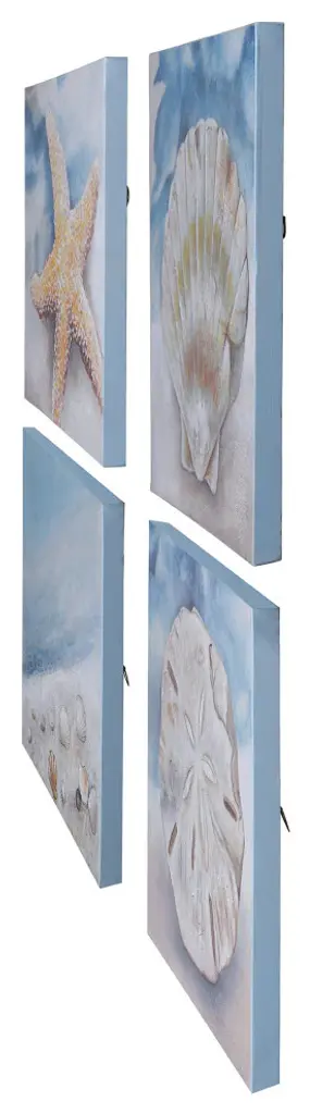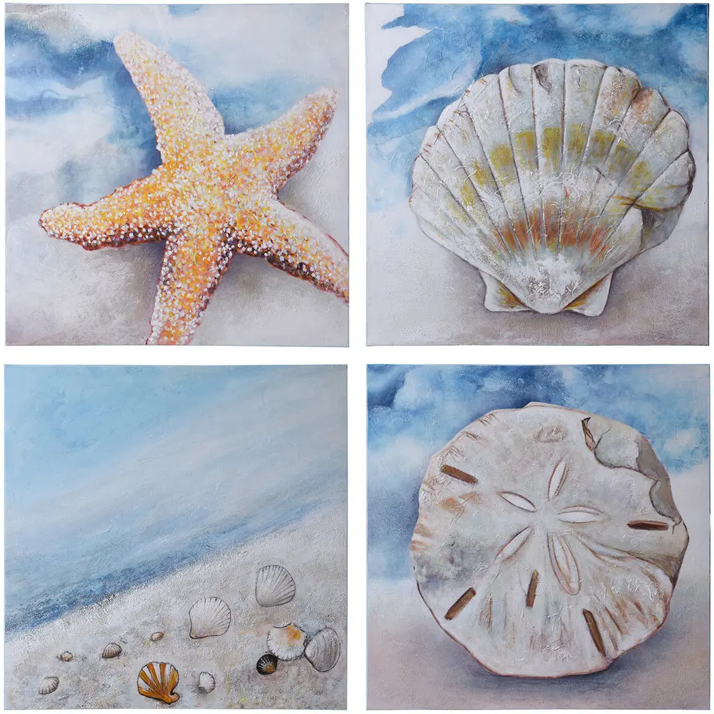Bring the coastal flair to any wall in your home with the StyleCraft Beach coastal animal art - set of 4. These wall prints are made from canvas, acrylic paint and pinewood stretcher. This beautiful artwork is partially hand painted and is well-suited for hanging on any bare wall in your home.Features -Due to the production process, each piece is unique and no two are exactly alike.Canvas art is composed of canvas, acrylic paint, and pinewood stretcher.Artwork is frameless.50% of this artwork is individually handpainted.Artwork has color tones in blue, yellow, brown, orange, white, tan, gray, and black.Set of four coastal animal wall art.Each wall arts are 24"H x 24"W x 1.37"D.Due to lighting and monitor differences, actual colors and finishes may vary slightly from what appears online.