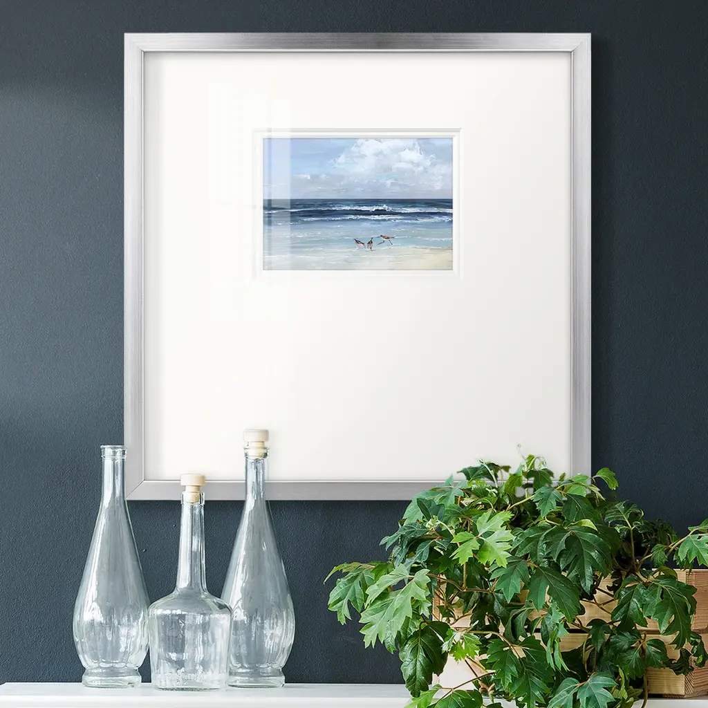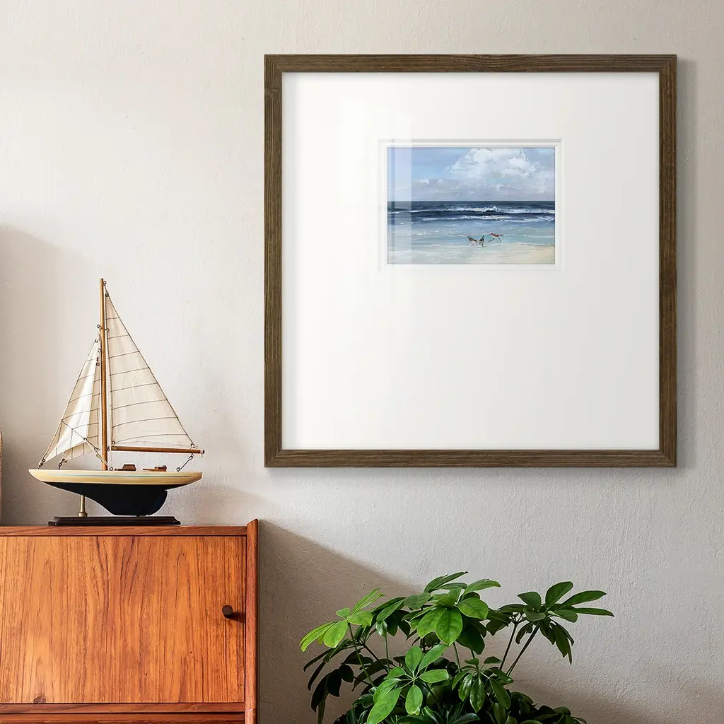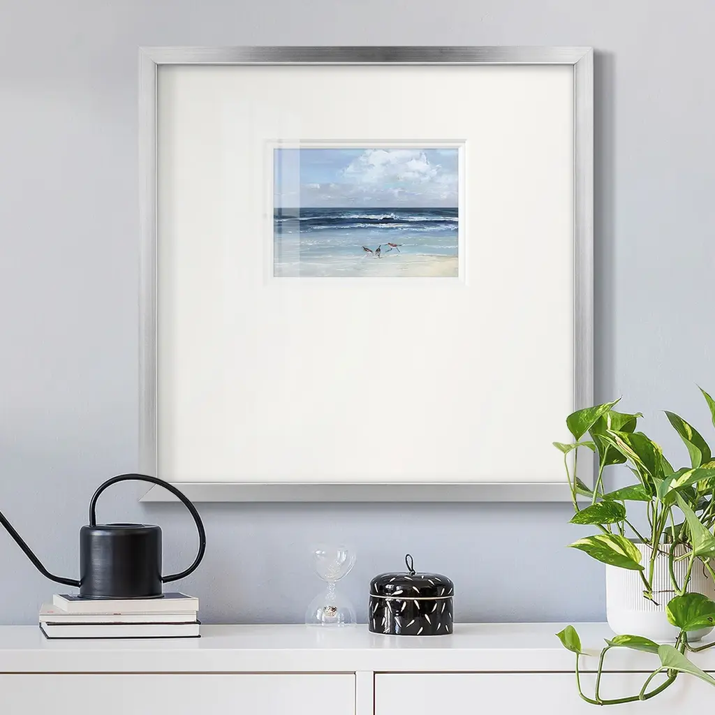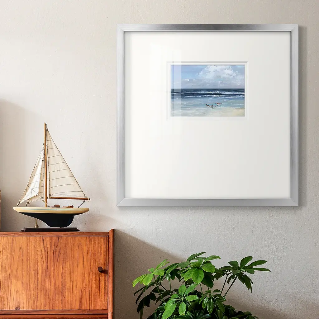 Beach TrioPremium Framed Print A framed cold pressed paper print featuring superior double matting and quality frame. 2 SIZES AVAILABLE 16''X16''' - Overall Size 20''X20''' - Overall Size Each piece is made to order. Each piece comes with hanging hardware. Made in the USA Ready to Hang Giclee Paper Print Plexiglass Beveled Matt Board Double Matte Board