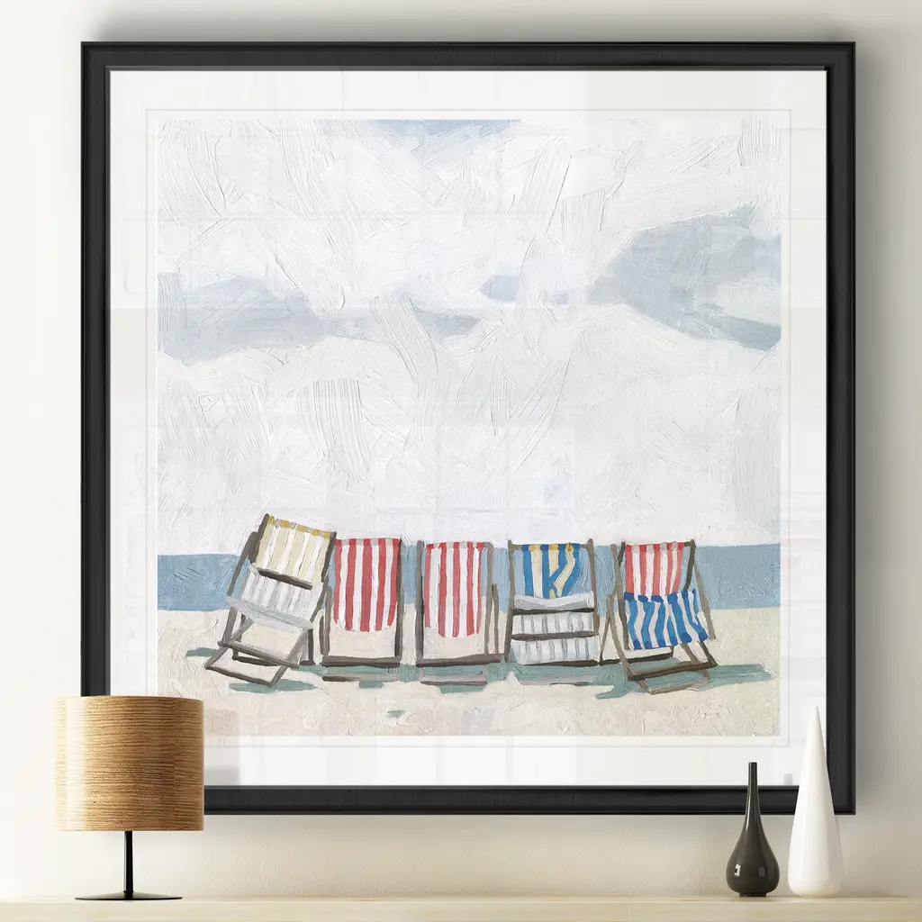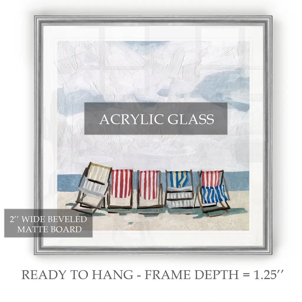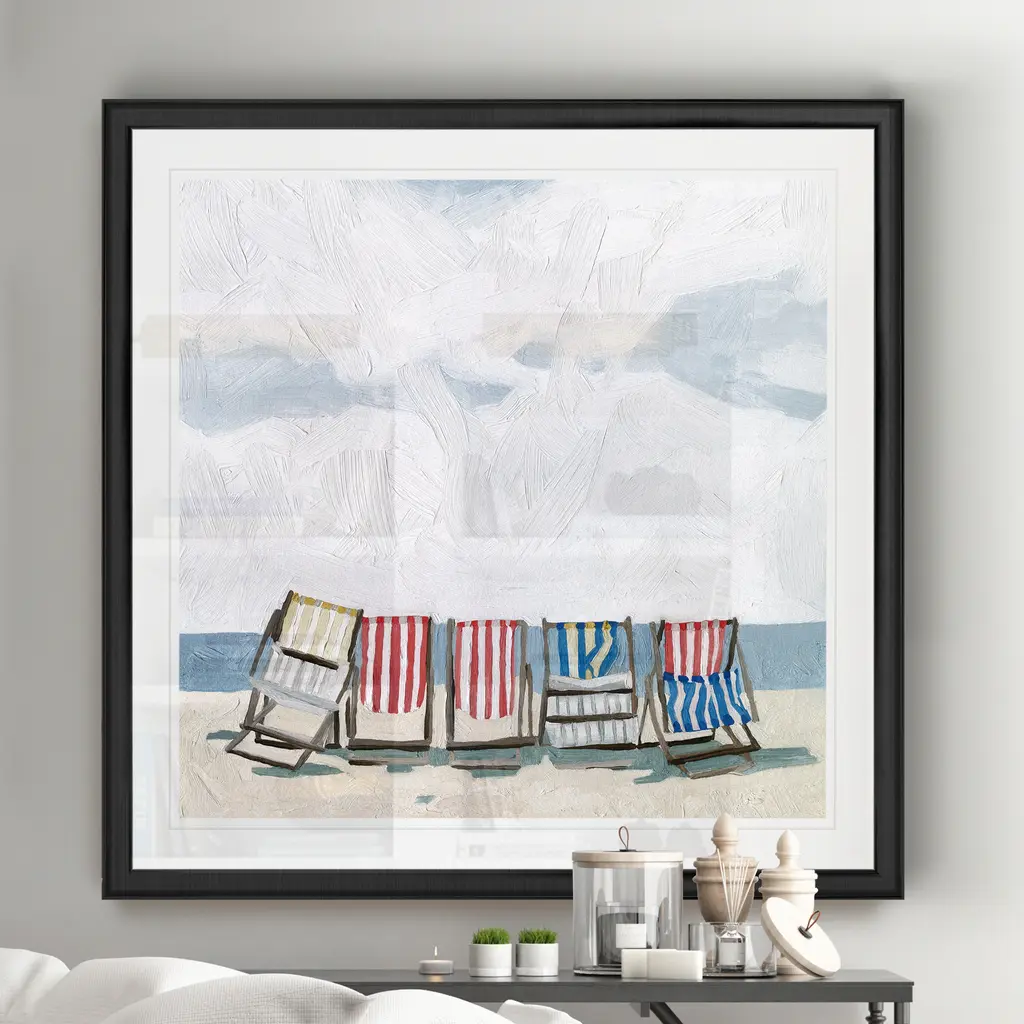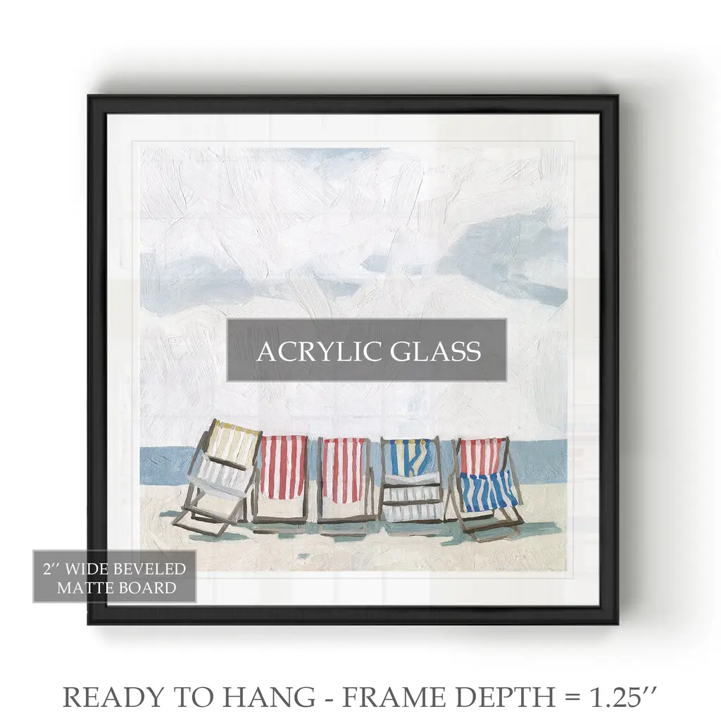 Beach Trip I -Black Framed Print A premium Black Framed giclee print Featuring a beveled a matt , acrylic glass, and a high quality giclee print 5 SIZES AVAILABLE 34''x34''- Overall Size 30''x30'' - Overall Size 26''x26''' - Overall Size 22''x22''' - Overall Size 18''x18''' - Overall Size Each piece is made to order. Built to Last Each piece comes ready to hang Fade and Water resistant Made domestically