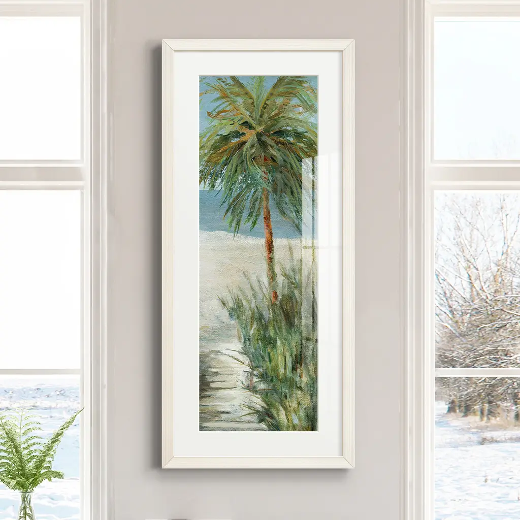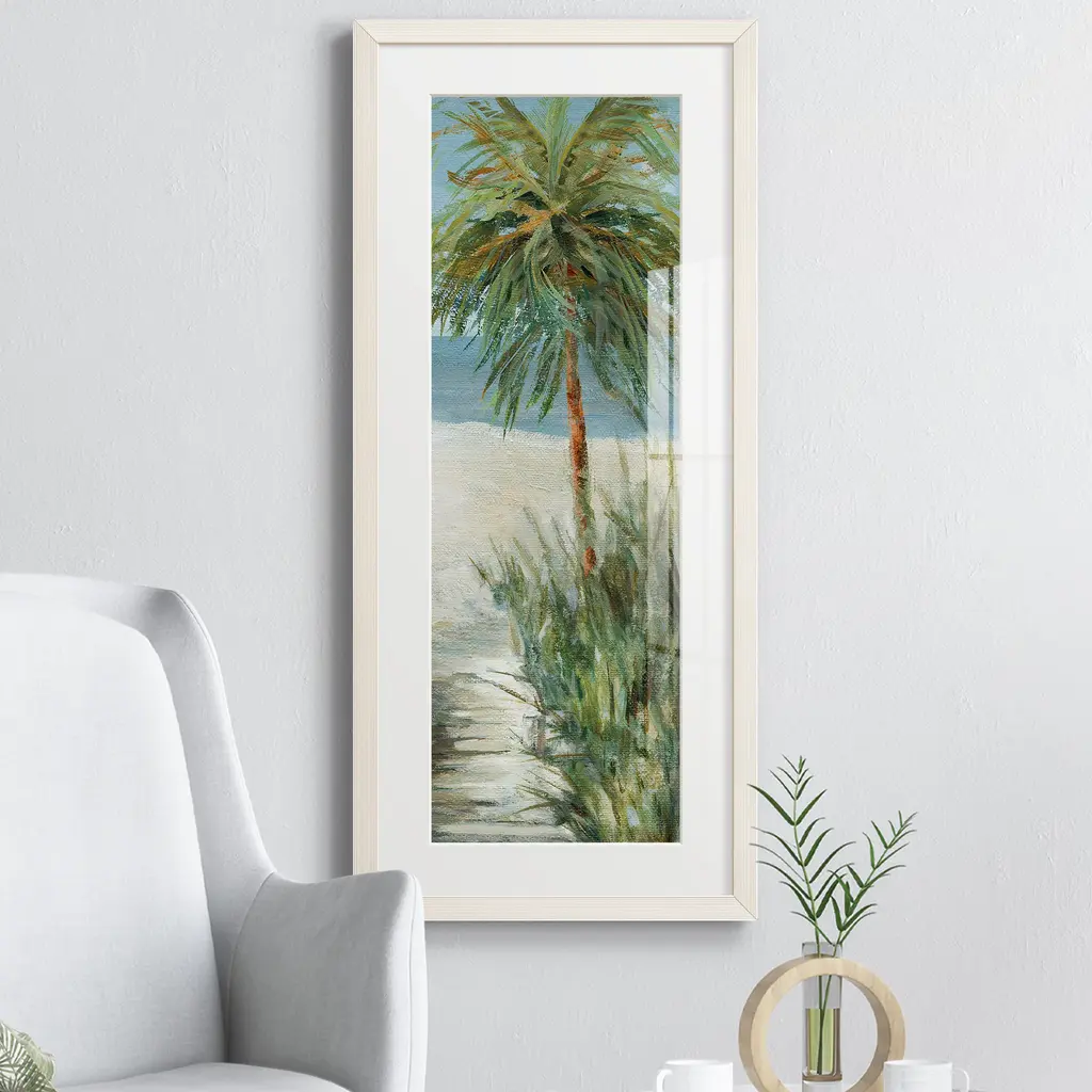 Beach Walk II-Premium Gallery Framed Print - Ready to Hang A Premium Framed Print created to last. Framed in distressed wood and available in an array of sizes and colors Featuring a beveled a solid wood stretcher bar, each piece comes ready to hand 1 SIZE AVAILABLE 12''X28'' - Overall Size Each piece is made to order. Each piece comes with hanging hardware. Made in the USA Ready to Hang Giclee Paper Print Acrylic Glass Beveled Matt Board