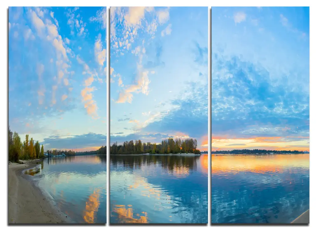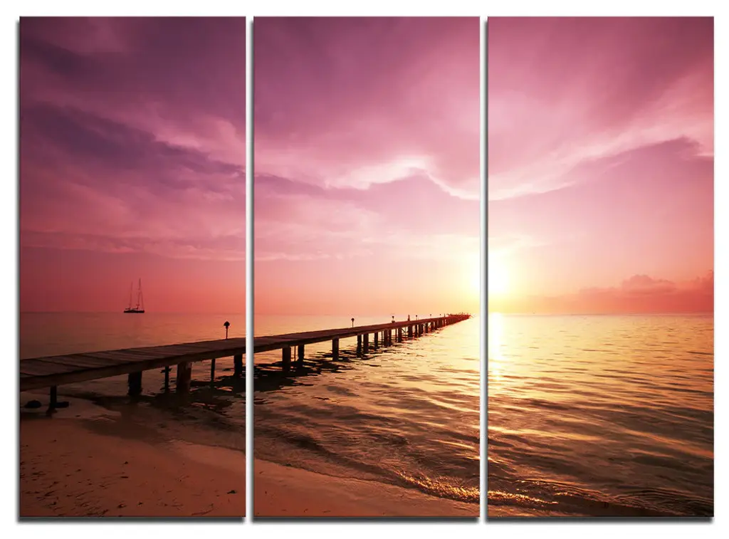 "Beach With Colorful Sky" Photo Metal Wall Art, 3 Panels, 36"x28"