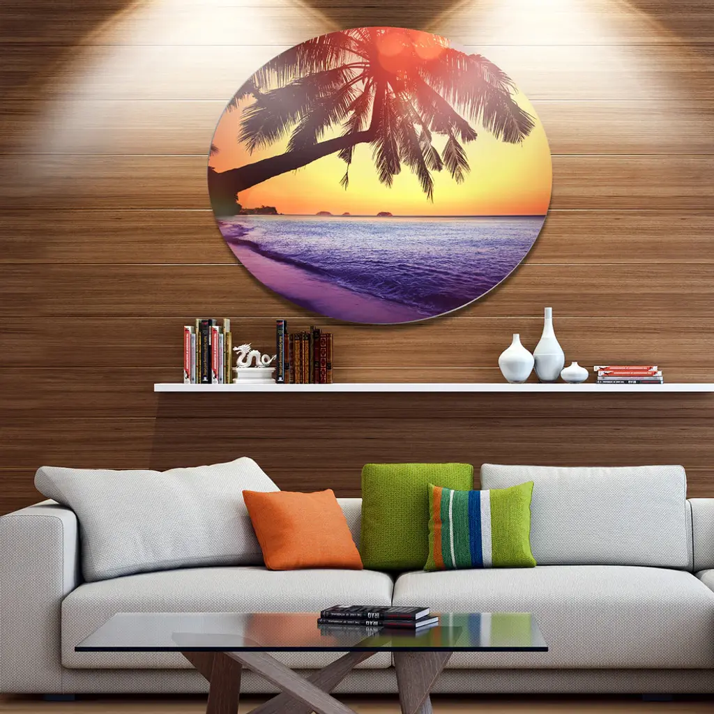 Beach With Silhouettes Of Palms, Seashore Large Disc Metal Artwork, 36"