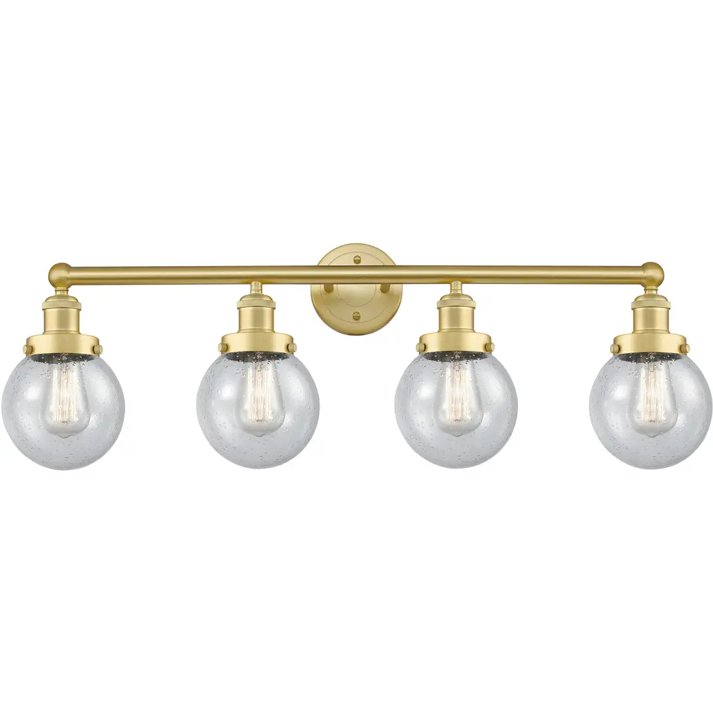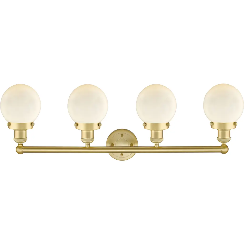 Beacon 4 Light 33.5 Inch Satin Gold Bath Vanity Light Wall Light In Matte White Glass, Small