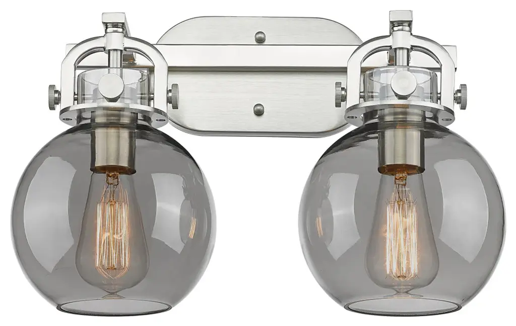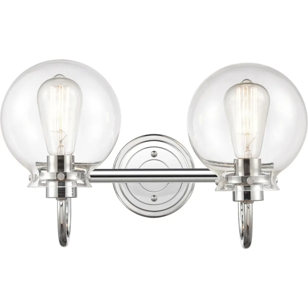 The Nouveau 2 is a highly detailed work of art that draws the eyes into its base and arm detail. The true show stopping piece is the beautifully curved glass shade that''s sure to wow you and guests alike.Features:Fixture can be hung with bulbs facing up or down4.5 inch 2mm heavy cast backplateDistance from outlet opening to top of fixture 2.25 inchesRated for 100 watt maximum per socketUL/CUL Damp RatedCompatible with Incandescent, LED, Fluorescent and Halogen bulbsNumber of Bulbs: 2Bulb Wattage: 3.5Bulb Type: LEDBulb Included: IncludedVoltage: 120Finish: Black Polished Nickel, Clear