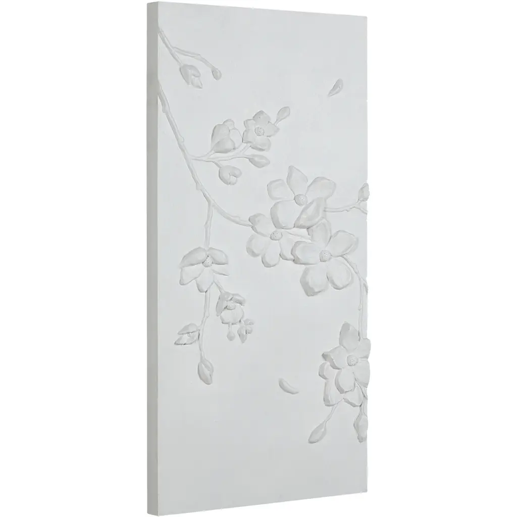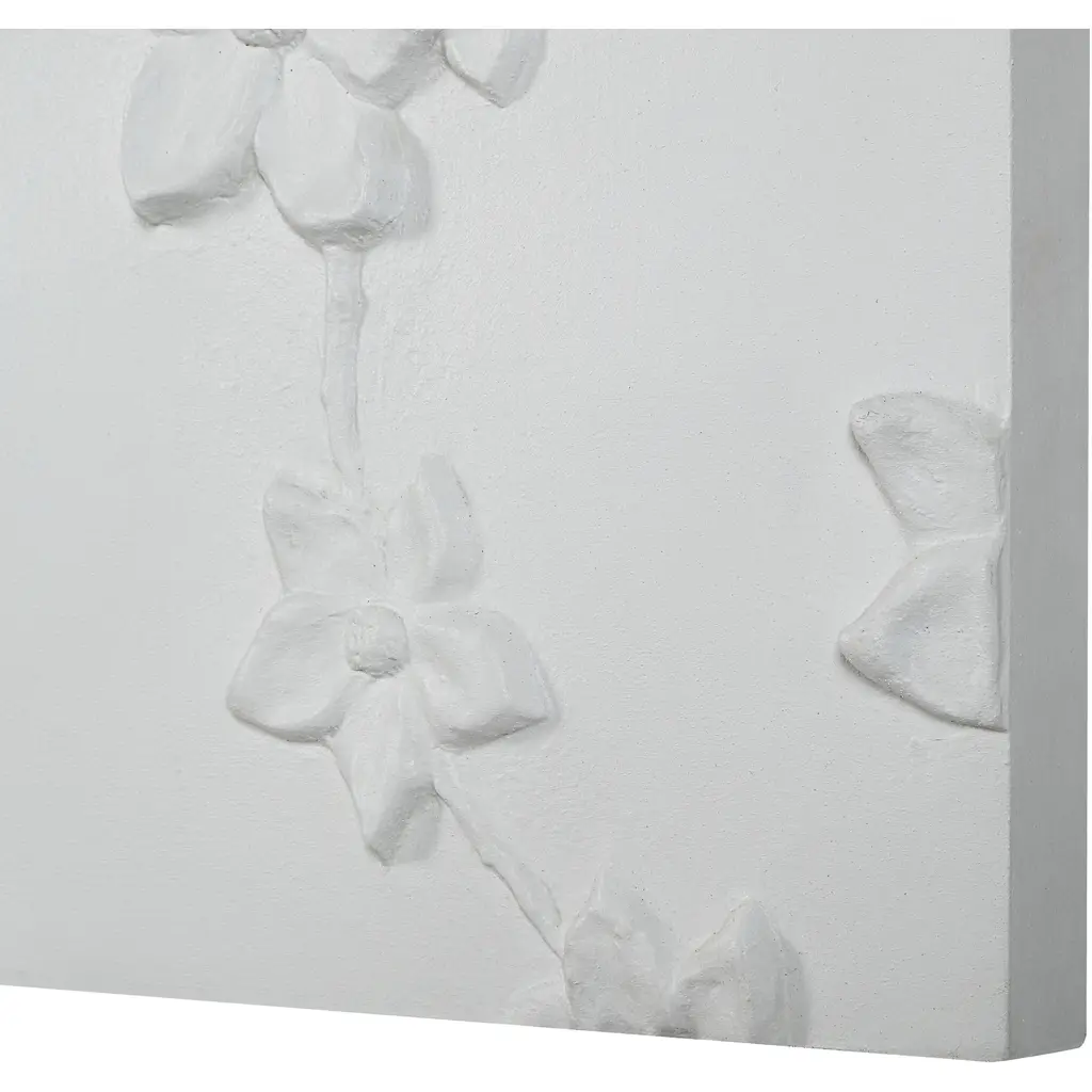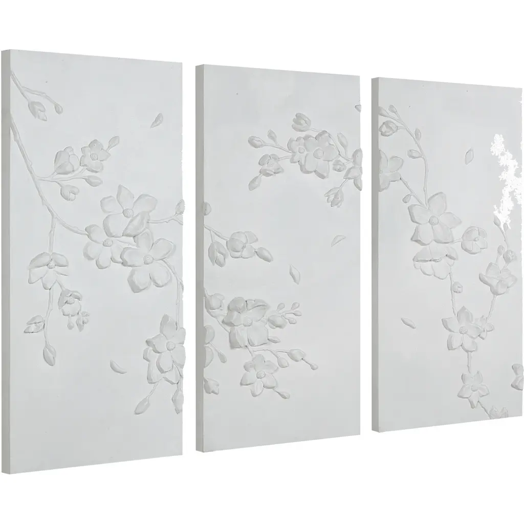 Spanning nearly 5 feet, this bloom-filled wall art is just the piece you need to add beautiful botanical style to a large wall. Composed of three high-quality canvases, this unique triptych features an array of hand-painted multidimensional shapes for a dramatic effect that delivers a transitional touch to any interior.