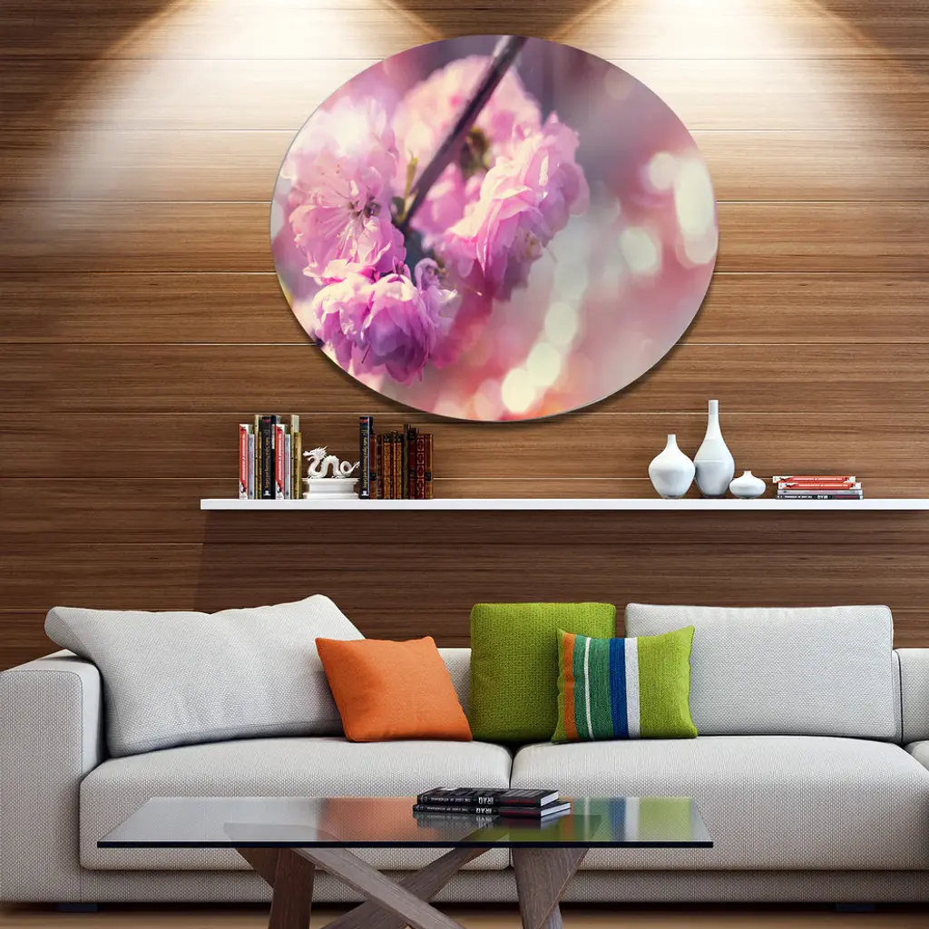 Beautiful Almond Tree Flowers, Floral Large Disc Metal Wall Art, 23"